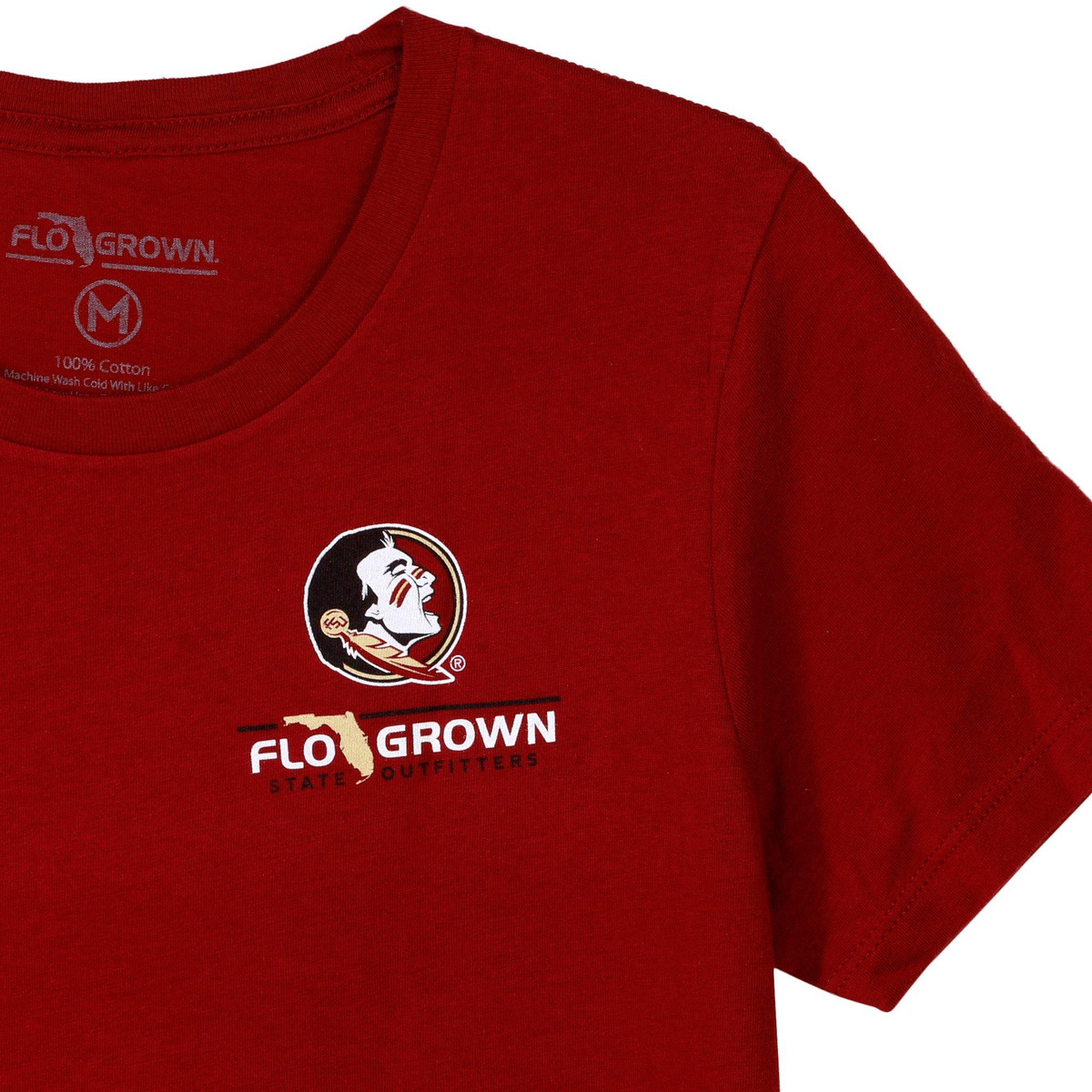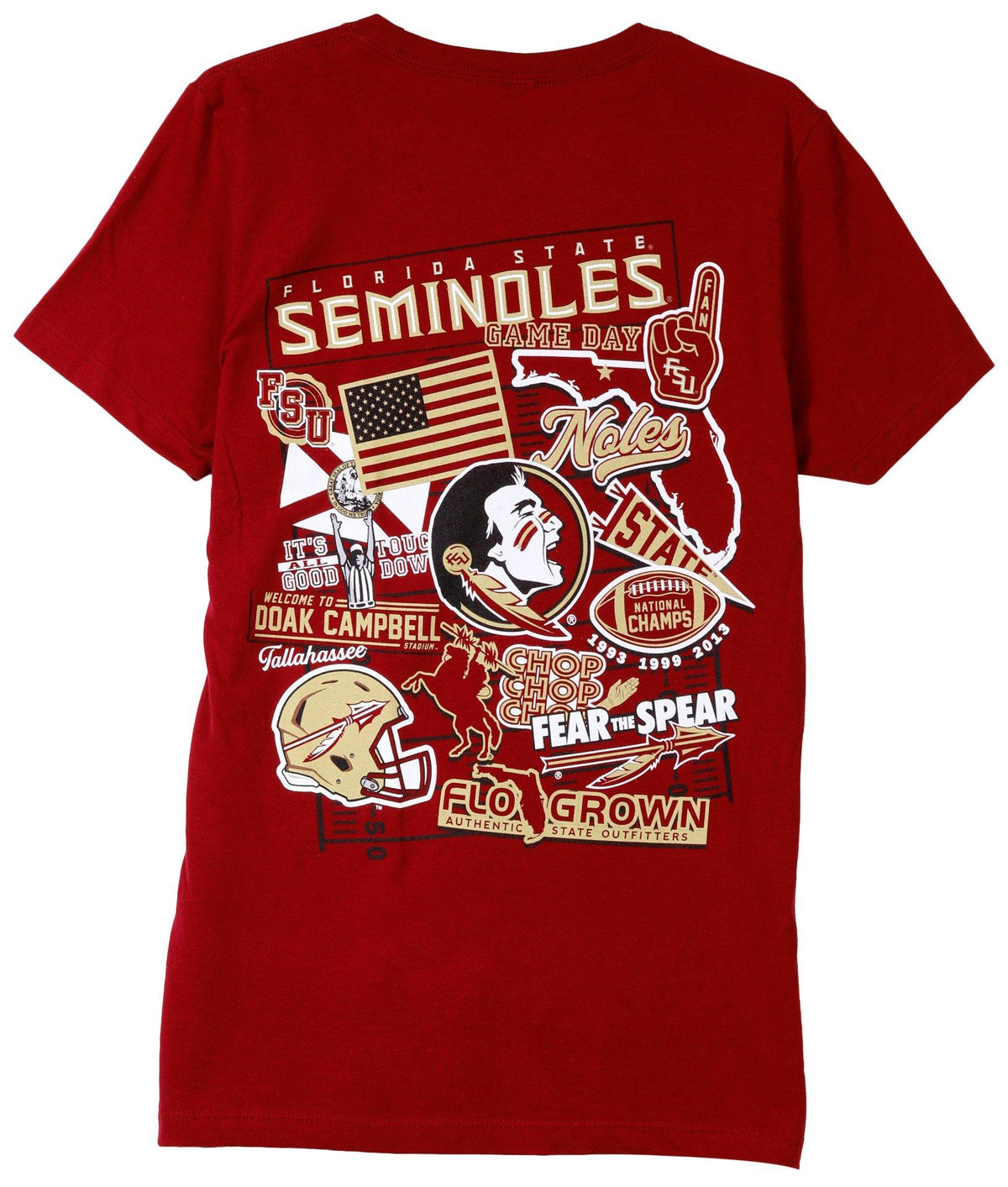 Elevate game day style with the Flogrown Juniors Florida State Graphic Short Sleeve Tee. Featuring a bold back design showcasing the Florida State football helmet and Doak Campbell Stadium, this tee captures Seminole pride in vivid detail. Crafted for comfort with a soft, breathable fabric, it ensures ease of wear all day long. Ideal for school, tailgates or cheering from the stands. Machine wash cold for easy care.