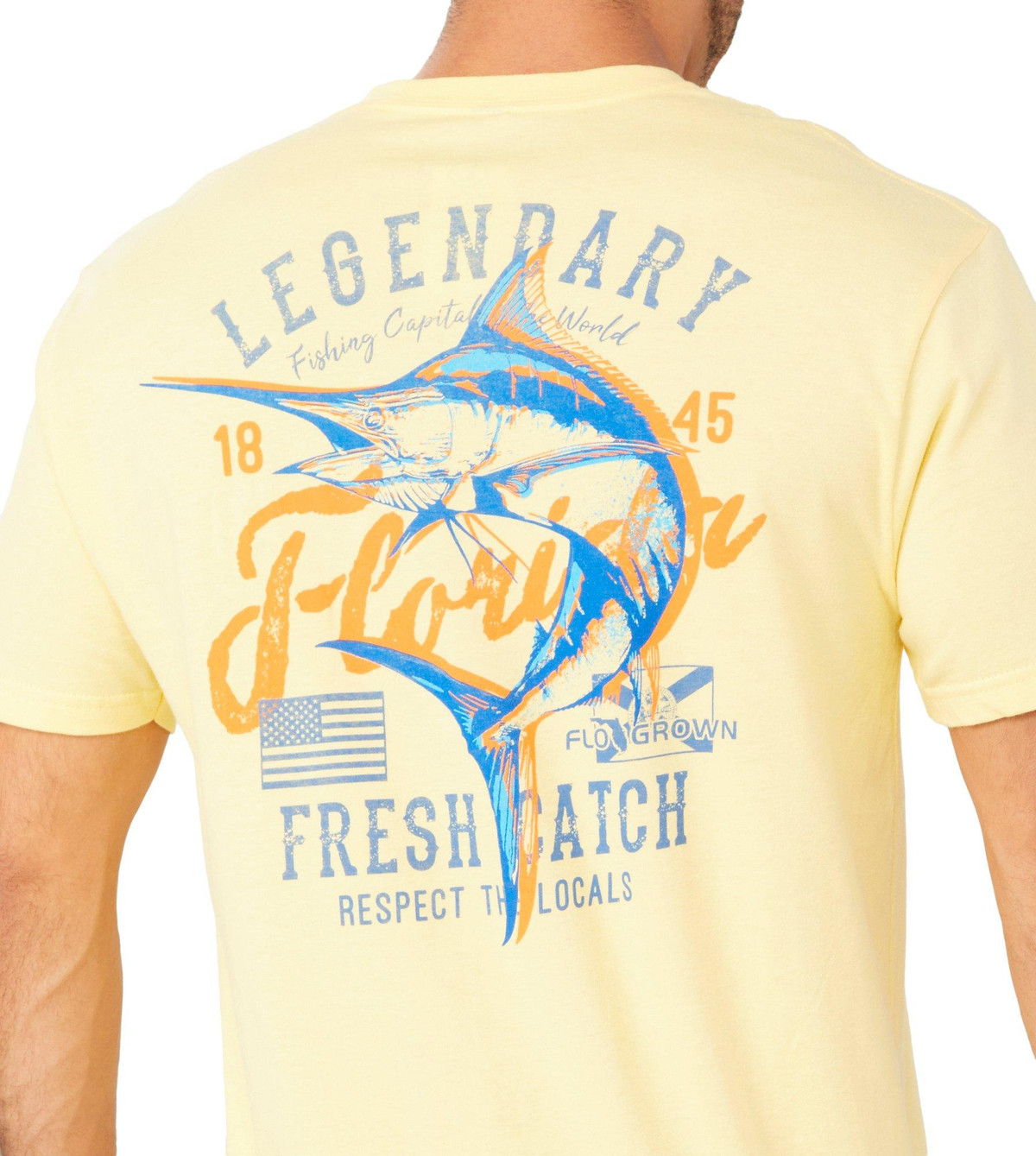 Reel in style with the Legendary Catch Tee. Featuring a bold tarpon graphic on pale yellow, this short-sleeve crew neck offers an athletic fit and all-day comfort in soft, 100% combed ringspun cotton jersey.