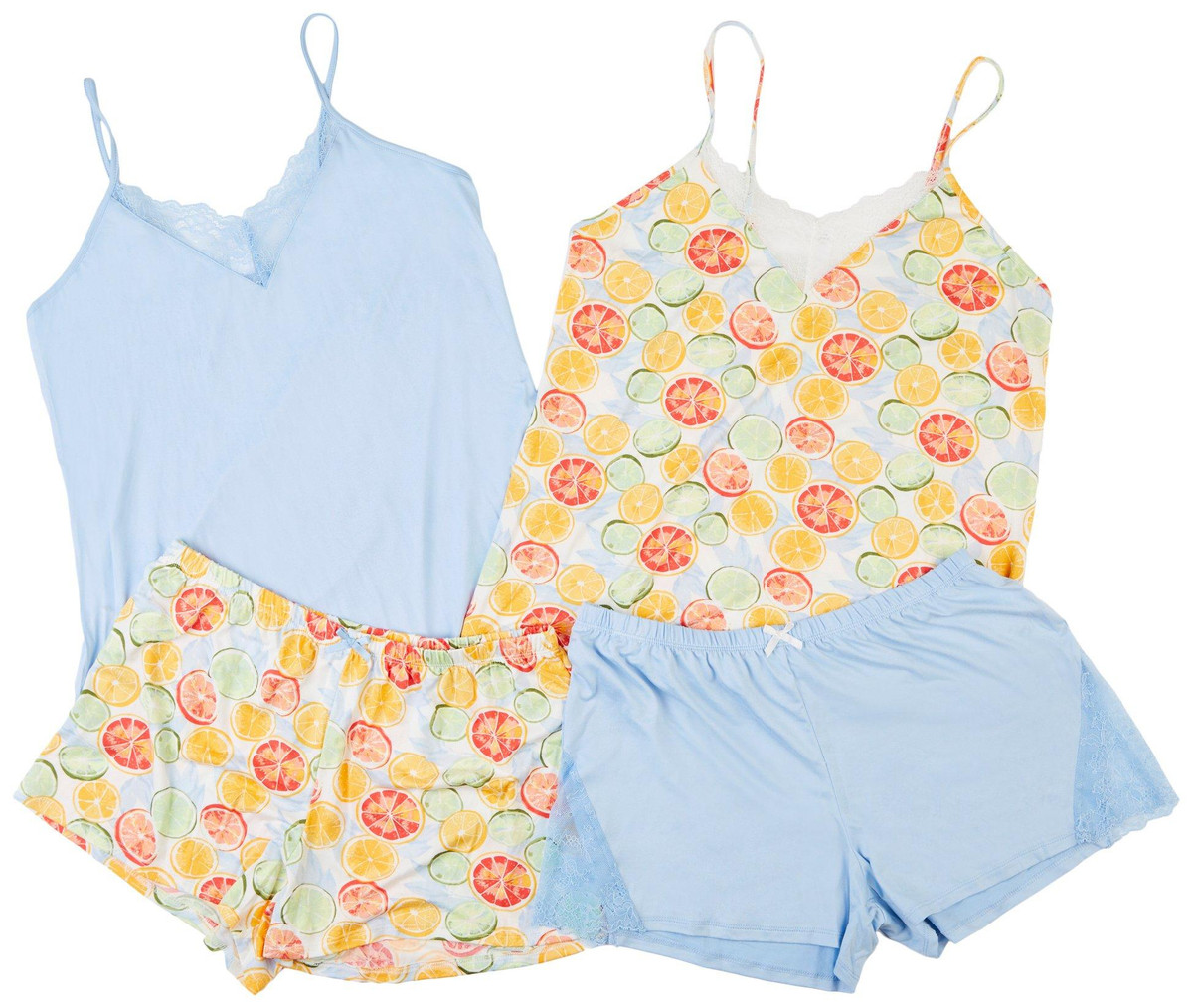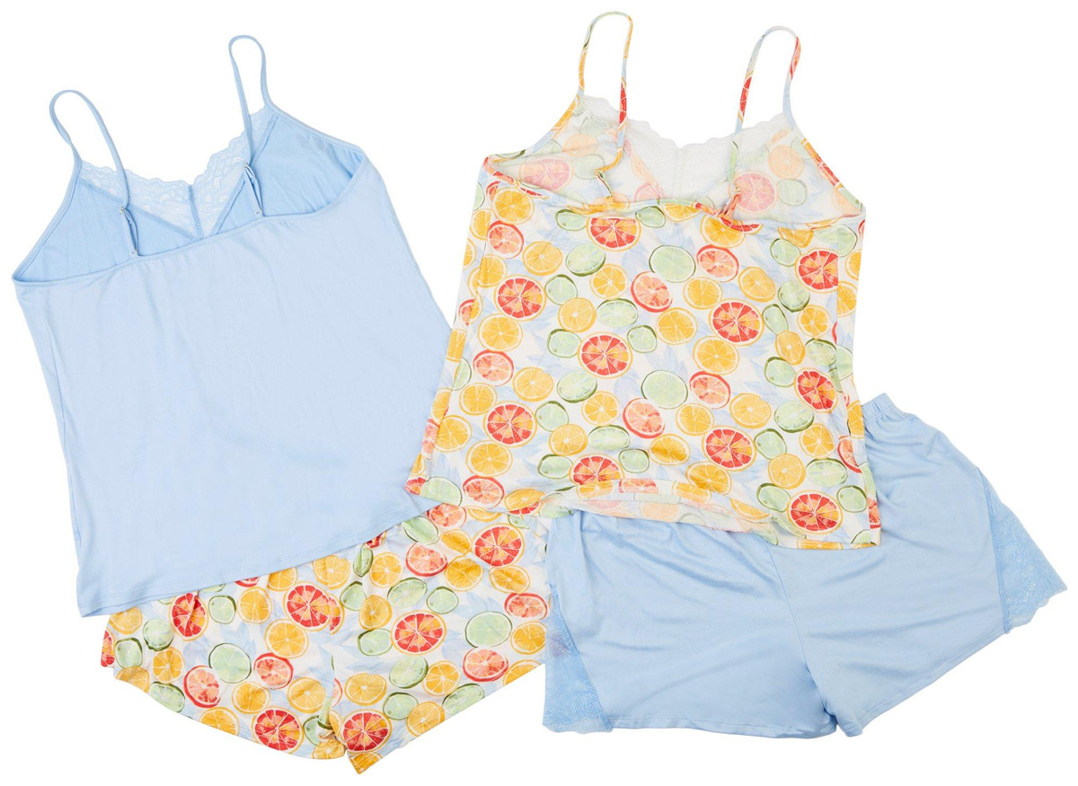 Flora 4-Pack Womens Sleepwear 2 Camis & 2 Shorts, Blue & Citrus Print, Ultra-Soft, Breathable & Relaxed Fit