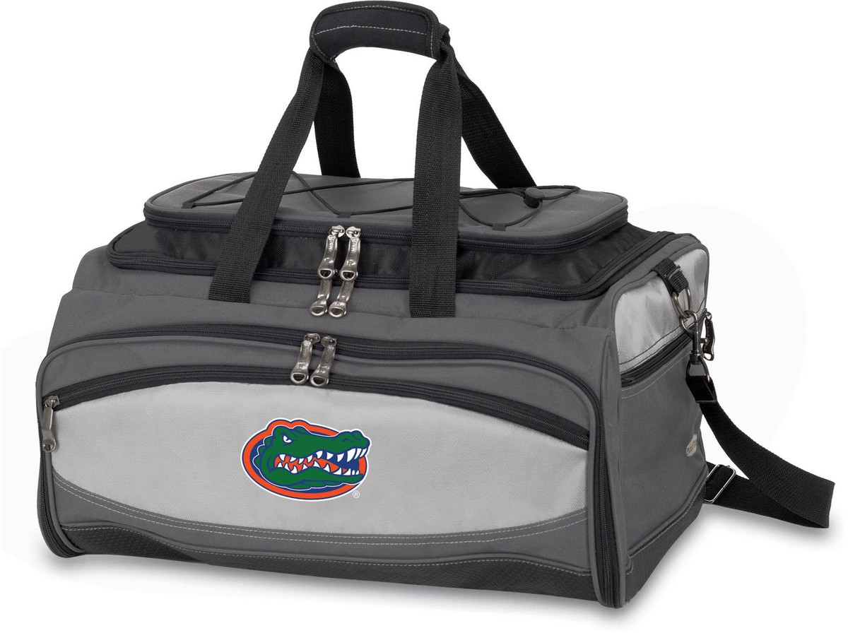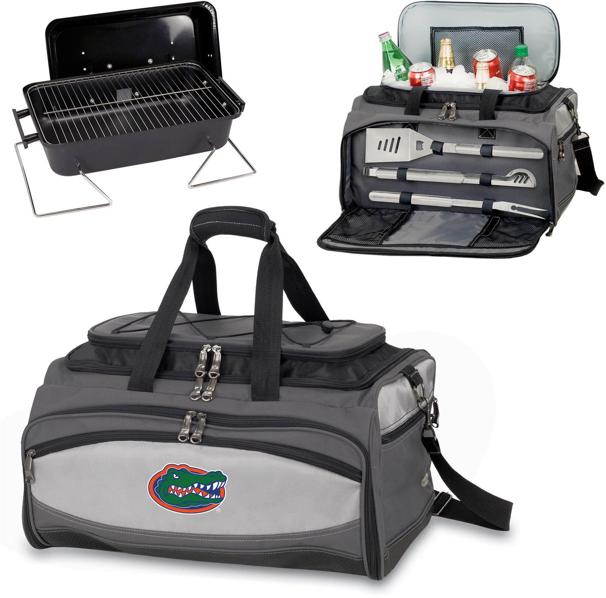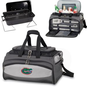 The ultimate tailgating set! Cooler measures 16” x 8” x 7” and holds 24 cans. Tote includes: portable charcoal grill with lid (16.7” x 10.8” x 5.1”), drawstring bag, spatula featuring bottle opener, grill scraper, and serrated edge, tongs, and BBQ fork.