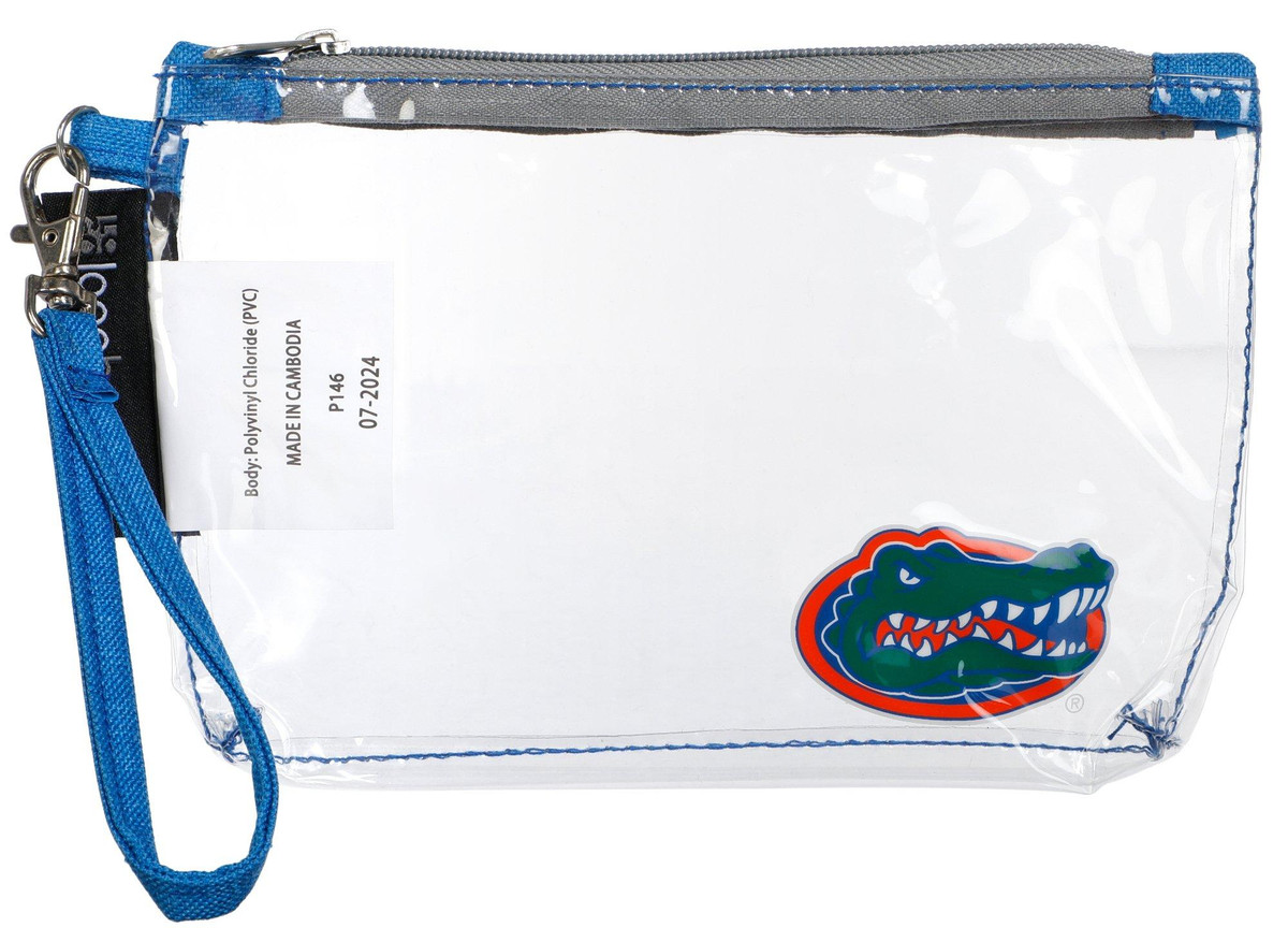 Keep essentials close with the University of Florida Clear Wristlet. Made from transparent PVC with the official UF Gators logo, it features a secure zip closure and a removable wrist strap for convenience. Sized to meet most stadium entry requirements while offering just enough space for daily necessities. Wipe clean with a damp cloth.