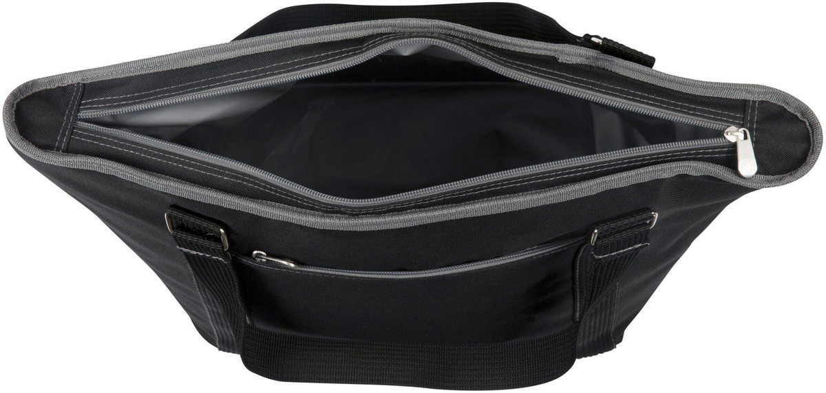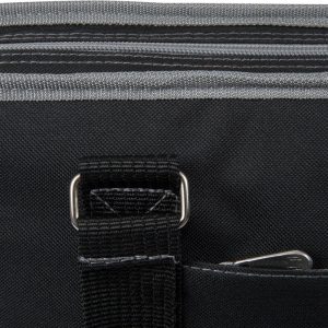 The Topanga cooler tote is made of durable polyester with complementing stitching accents and features a separate exterior pocket. Interior features heat-sealed PVC for no leaks and it is large enough to carry 24 soda cans. Measures: 21” x 8.7” x 13”.