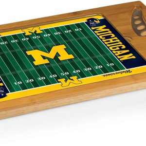 The Icon Florida State Seminoles Cutting Board is a 3-pc. set that has a solid rubberwood base with a bamboo rim accent, a tempered glass lid, & a cheese knife with its own carved out area in the wood base. Measures 15.2”L x 10”W x .8”H.