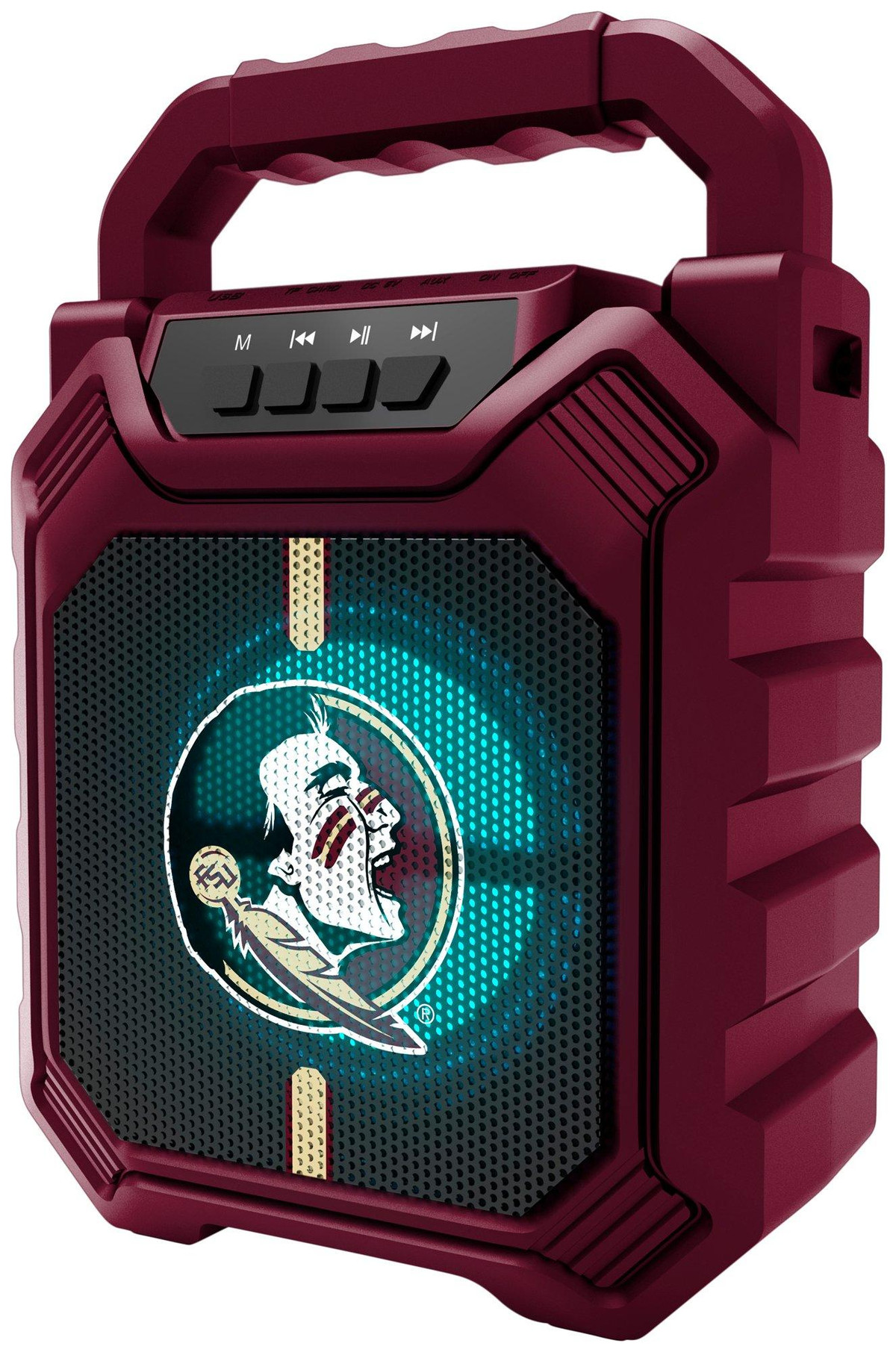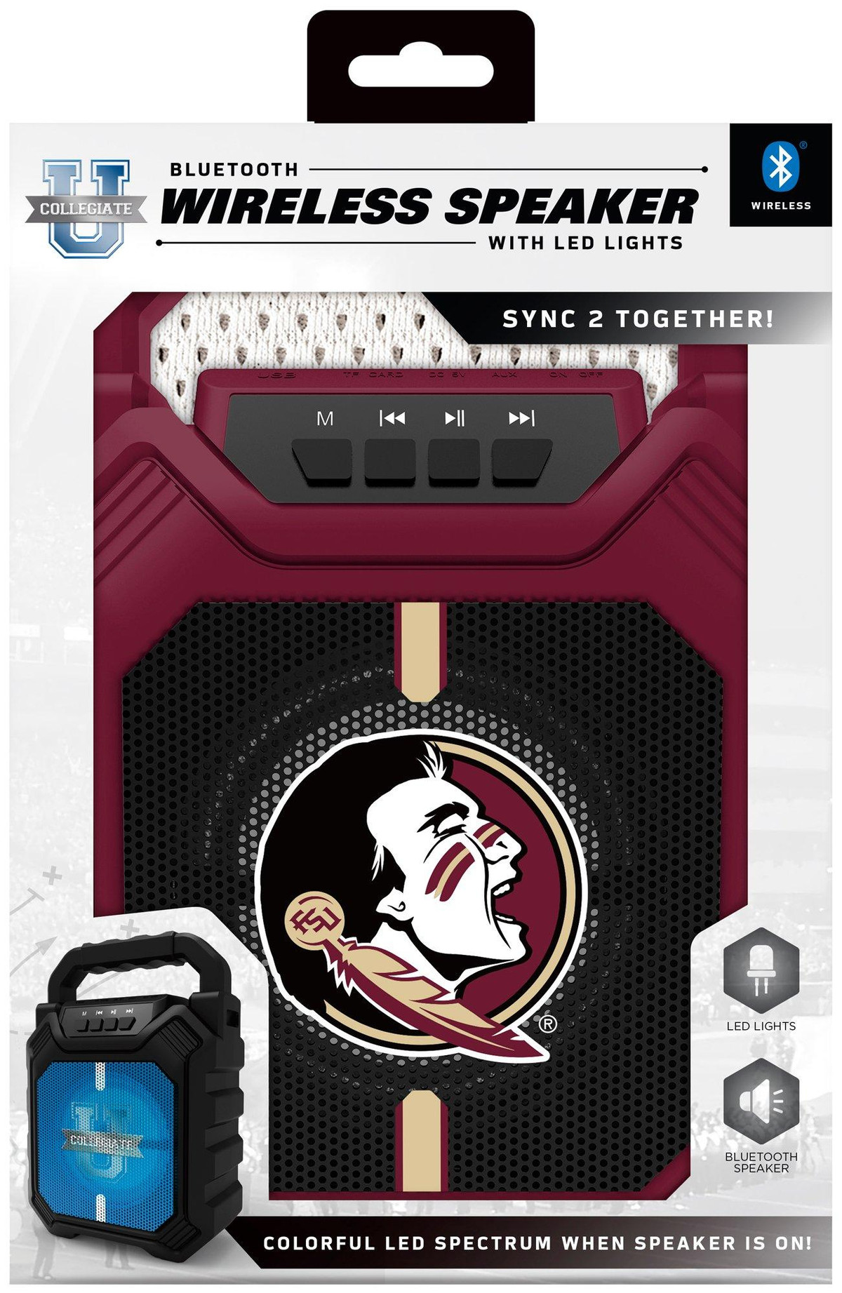 Listen to your favorite tracks and show your team spirit at the same time with this bluetooth speaker! It features color-changing LED light accents, a 30-foot bluetooth range, USB/AUX inputs, and 3-4 hours of playback time. Includes speaker, micro USB charging cable, and an instruction manual. WARNING: CANCER AND REPRODUCTIVE HARM – WWW.P65WARNINGS.CA.GOV.
