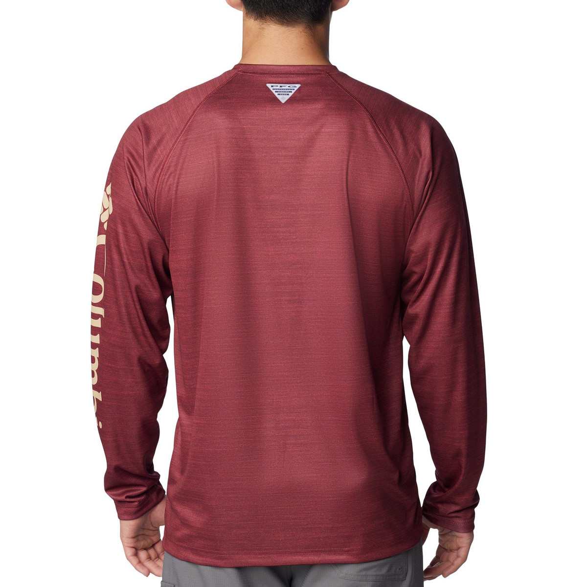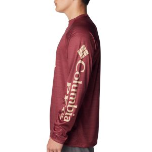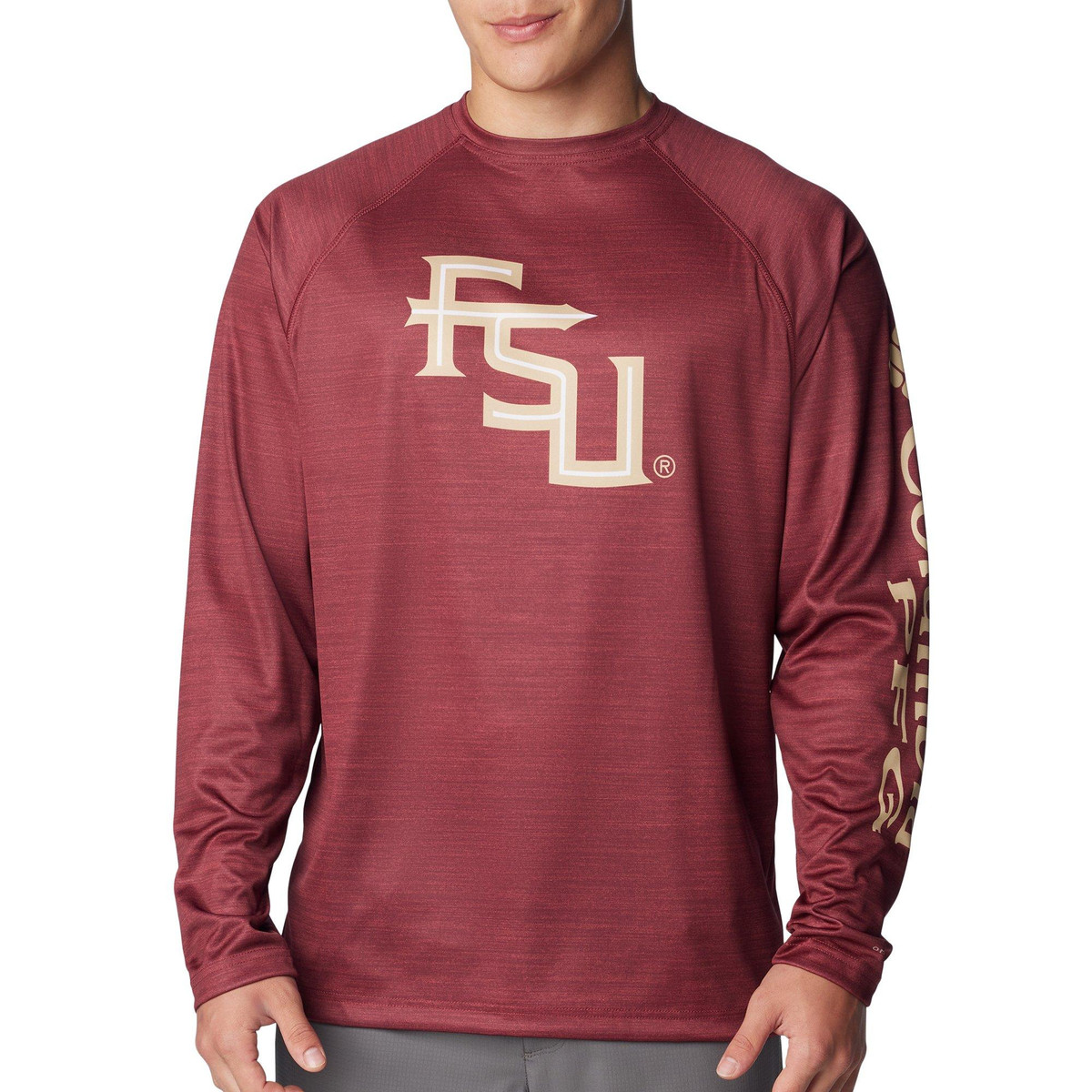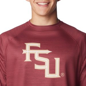 This Terminal Tackle long sleeve PFG T-shirt by Columbia features Omni-Shade UPF 50 sun protection, Florida State Seminoles chest logo, solid color, Columbia logo on the sleeve, Omni-Wick moisture-wicking properties, and quick-drying fabric so you can stay outside longer.