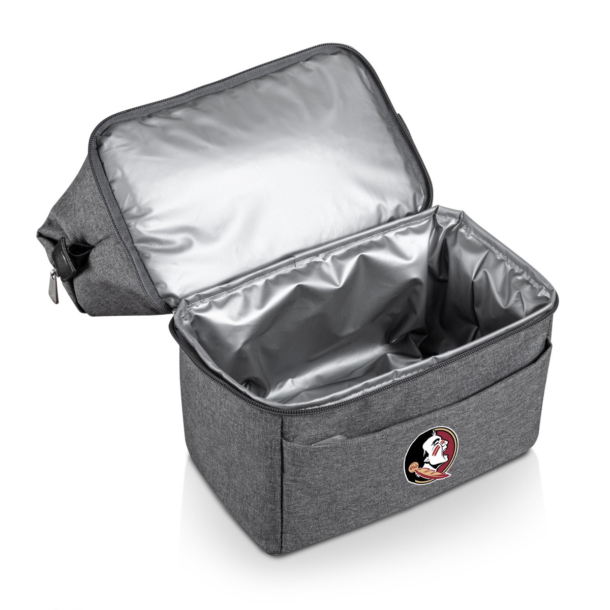 The Lunch Bag Cooler / Lunch Box is a soft cooler ideal for work, school, and small picnics. With an insulated work cooler on the bottom, a dry compartment up top and an additional front storage area to boot, theres plenty of space in this lunch tote. Two tiered lunch tote; Front flat zippered pocket leads to dry compartment for shelf items; Cooler on the bottom, made with wipeable materials; Leatherette handles and side snaps to increase compartment carry volume; 9.75” L x 5.5” W x 10.1”H