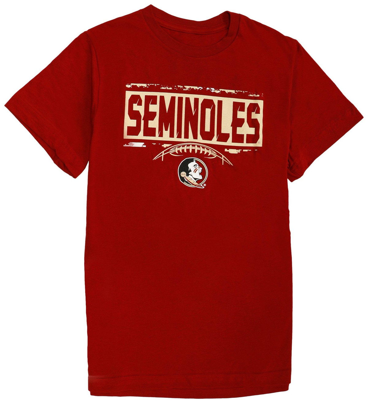 Show your team pride with this Florida State Seminoles tee featuring a classic crew neck and short sleeves. Made from 100% cotton, it offers breathable comfort for game day or everyday wear. Bold graphics on the front and back make a statement from every angle