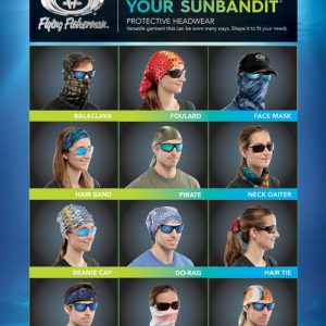 Flying Fisherman sunbandit multifunctional headwear bandana are most often worn as a face mask for protection from the sun, wind and harmful UV rays, but can also be worn as a headband, cap, neckerchief, hair tie and more. Made of seamless microfiber polyester, they are extremely lightweight and breathable, wick away moisture, and dry quickly. Don’t leave port without one!
