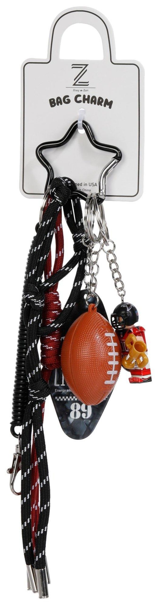 Football Theme Bag Charm with Star Carabiner
