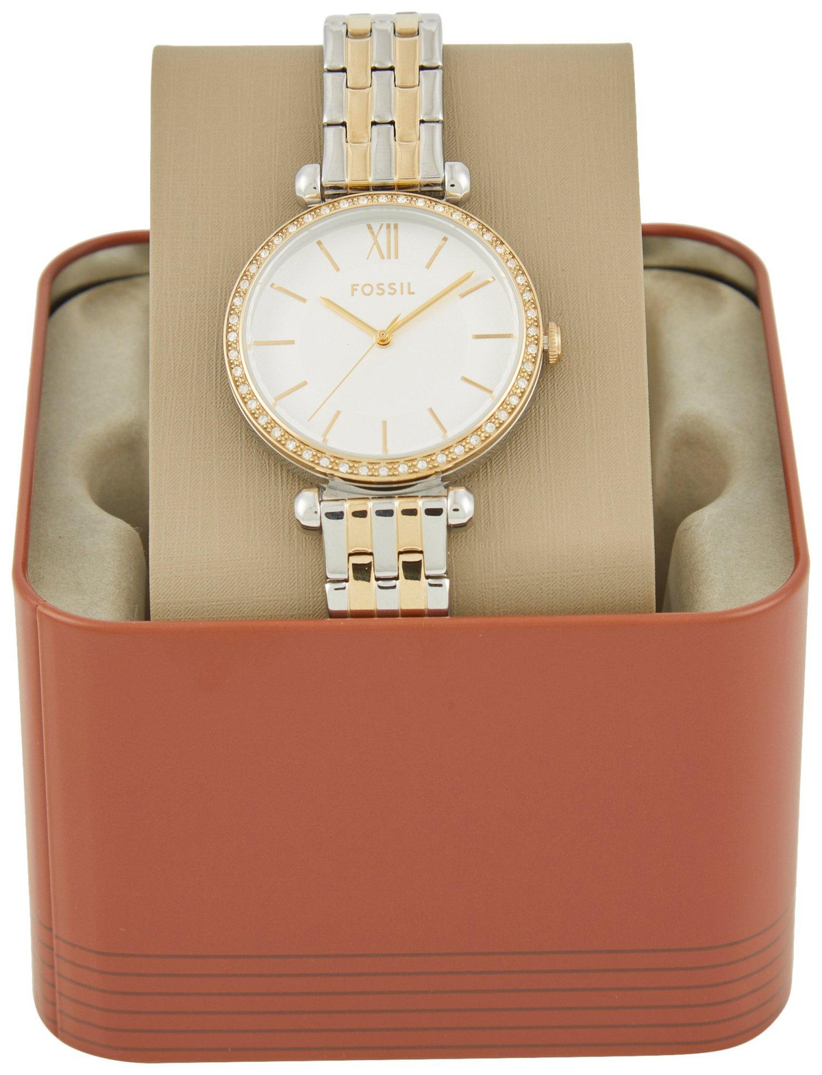 This 36mm watch combines a sophisticated white matte dial with a sleek two-tone stainless steel bracelet in silver and gold. The round case and classic design make it a timeless addition to any wardrobe. Whether for a special occasion or everyday wear, this piece offers lasting style and functionality.