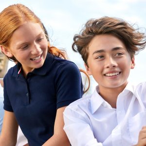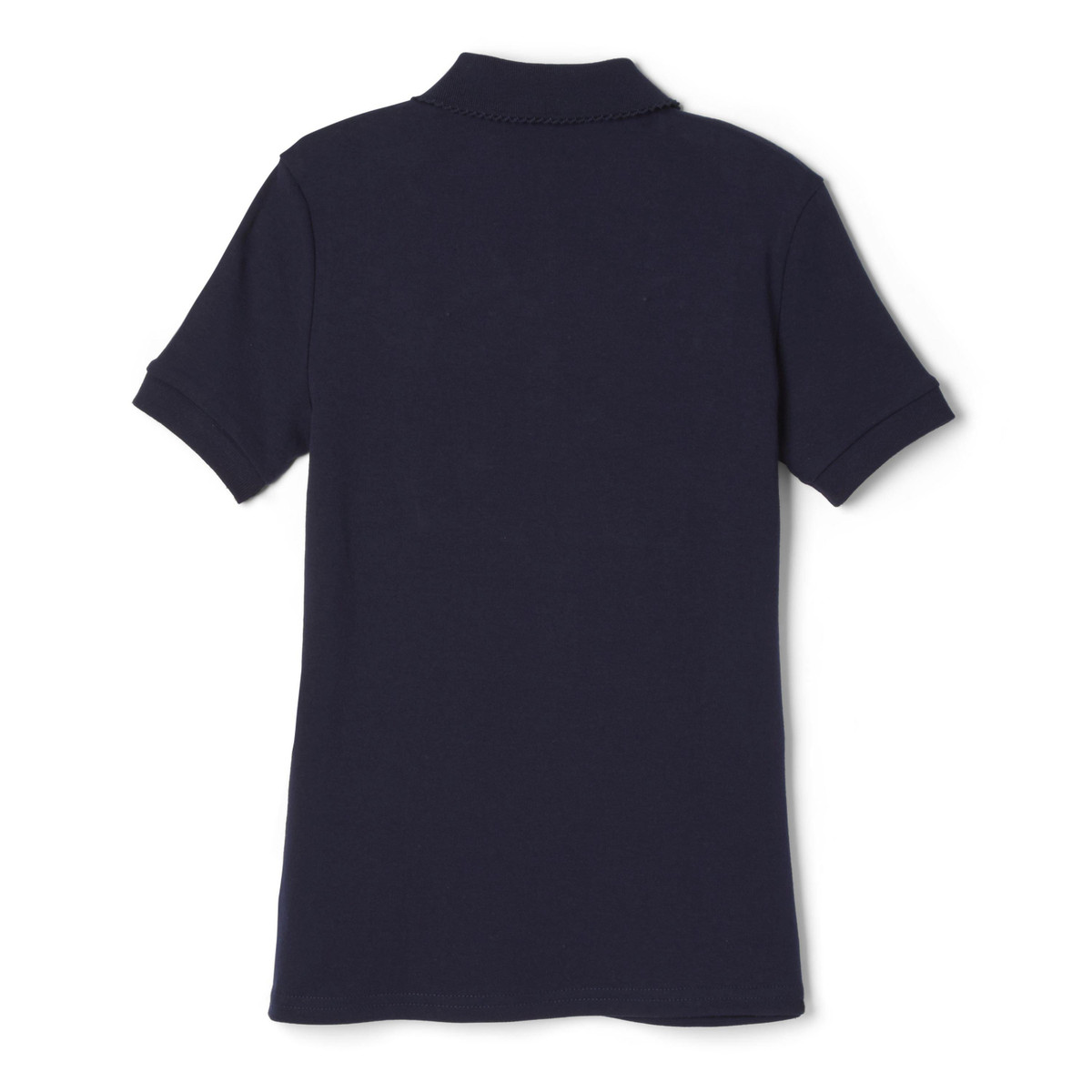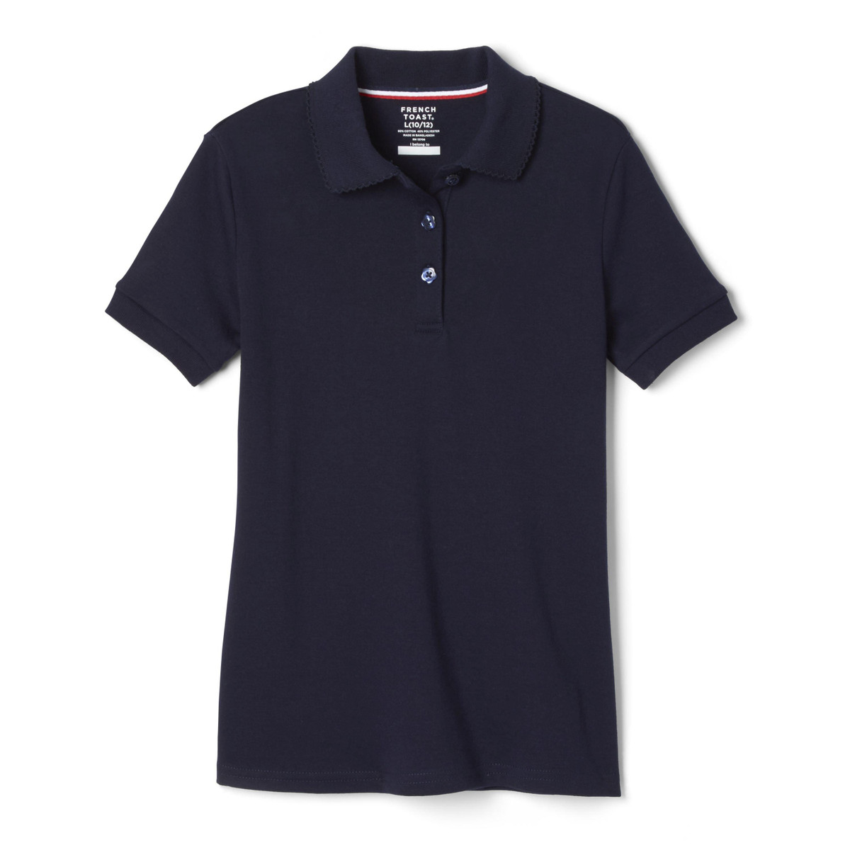 Sure to be a favorite, this interlock polo shirt by French Toast features a solid design, three-button placket with flower buttons, and a picot collar.