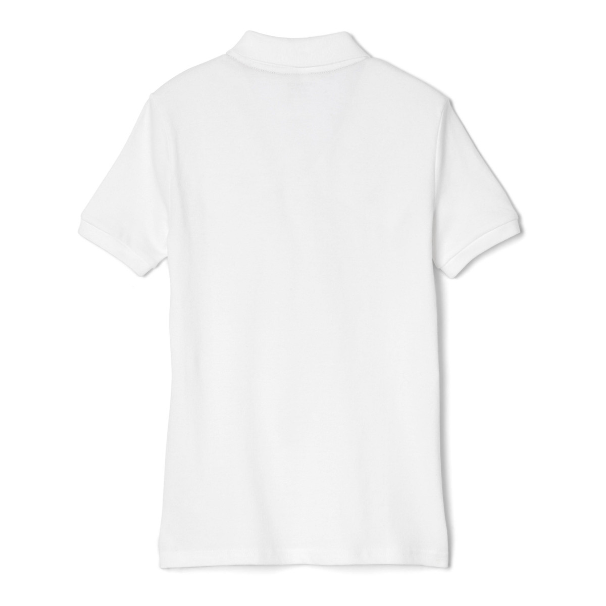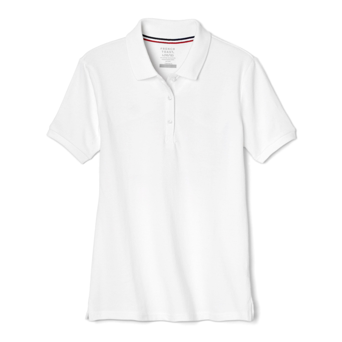This short sleeve polo features a solid color design on soft stretch pique fabric, a three-pearlized button placket with a flat knit colla, and side vents with a hi-low hem.
