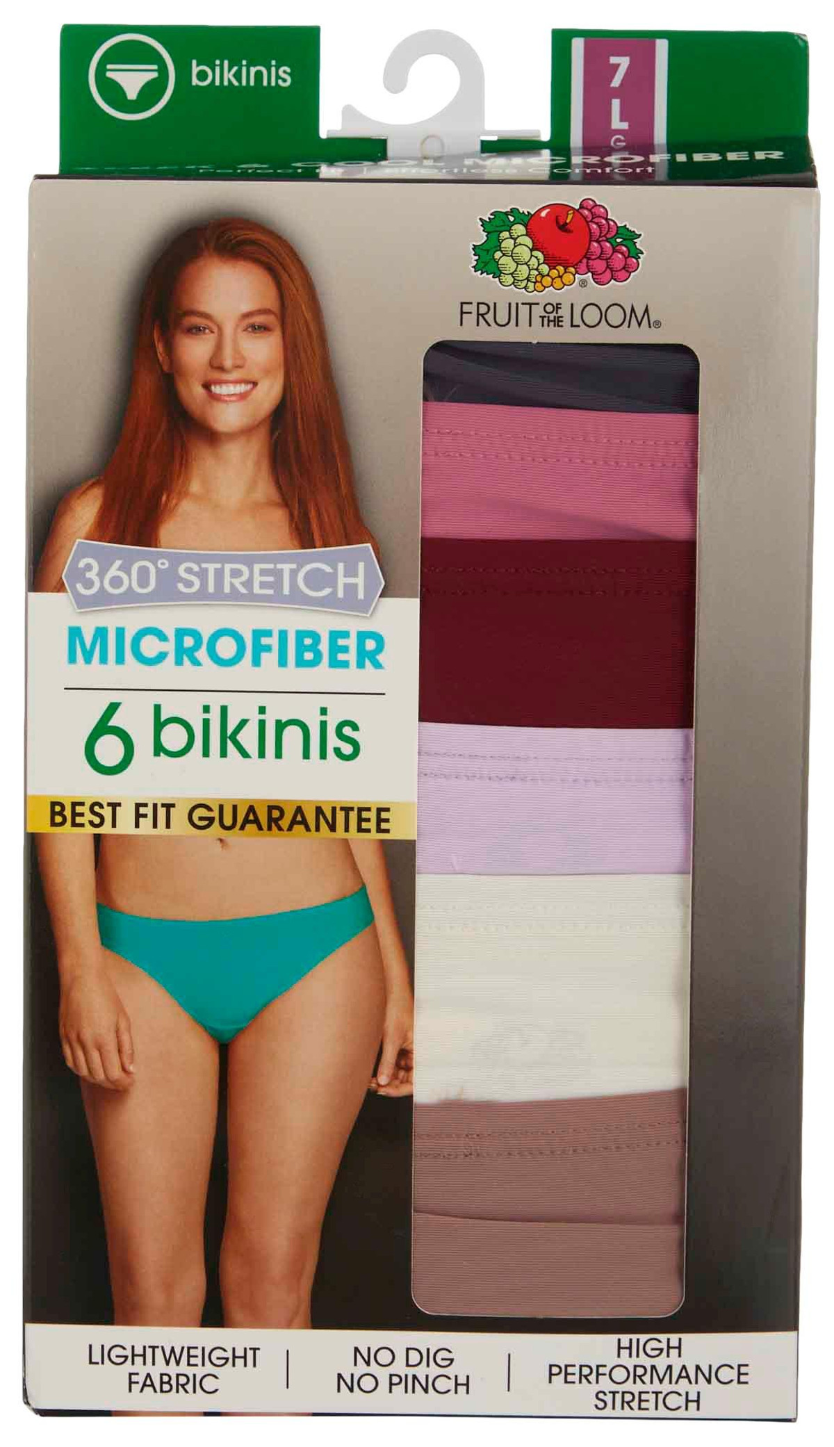 This Fruit of the Loom 6 pk. of Microfiber underwear features assorted solid-color designs on lightweight stretch fabric, no-pinch waist and leg elastic, and 100% cotton liner. Fabrication 82% nylon, 18% spandex.ation 92% nylon, 18% spandex.