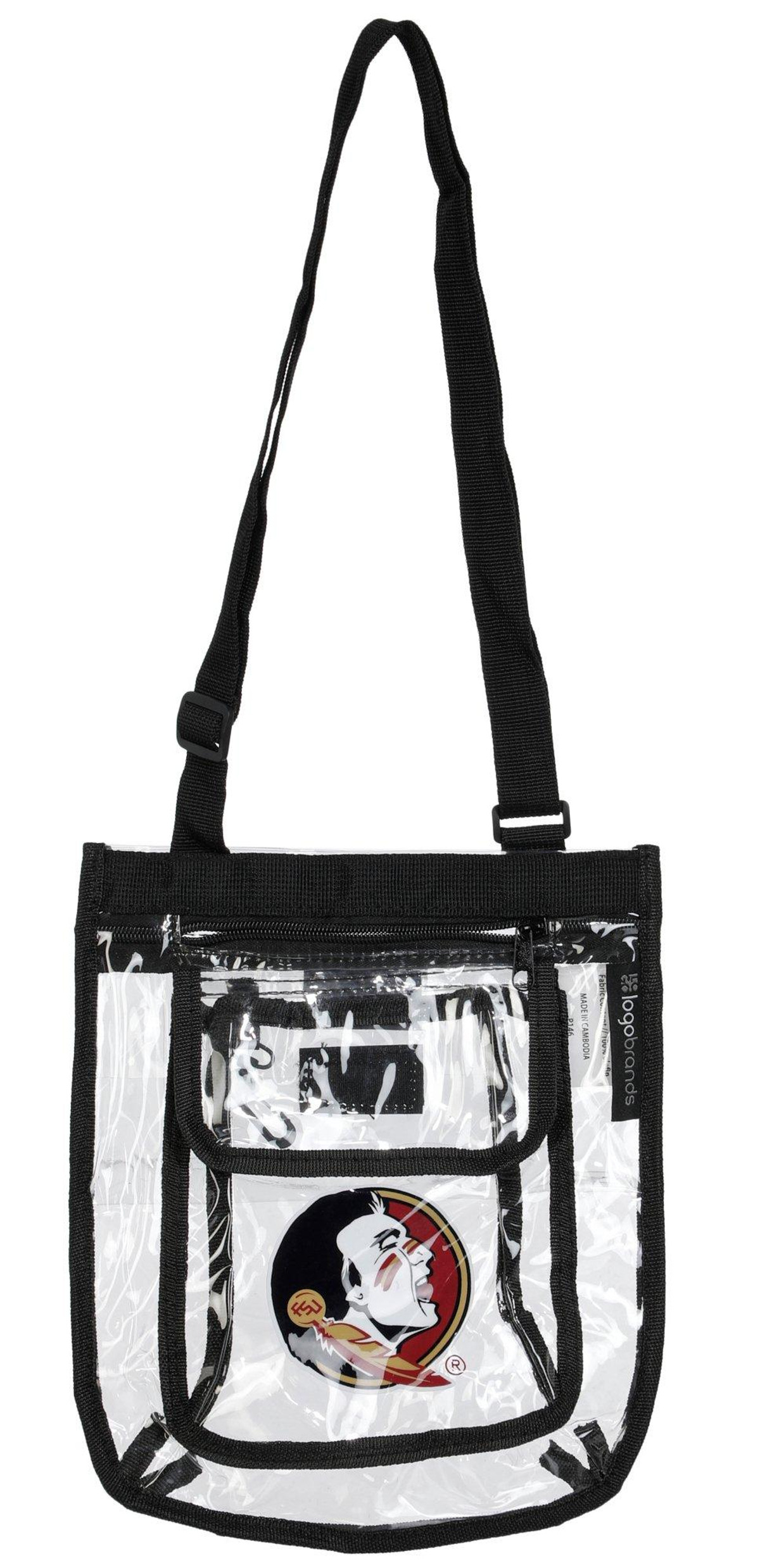 Stay organized on game day with the FSU Florida State Seminoles Gameday Clear Crossbody Bag. Designed to meet most stadium regulations, it features a spacious snap closure main compartment, two hook and loop fastener pockets, and a secure zipper pocket for essentials. Ideal for stadium entry, tailgates, or campus events. Wipe clean with a damp cloth.