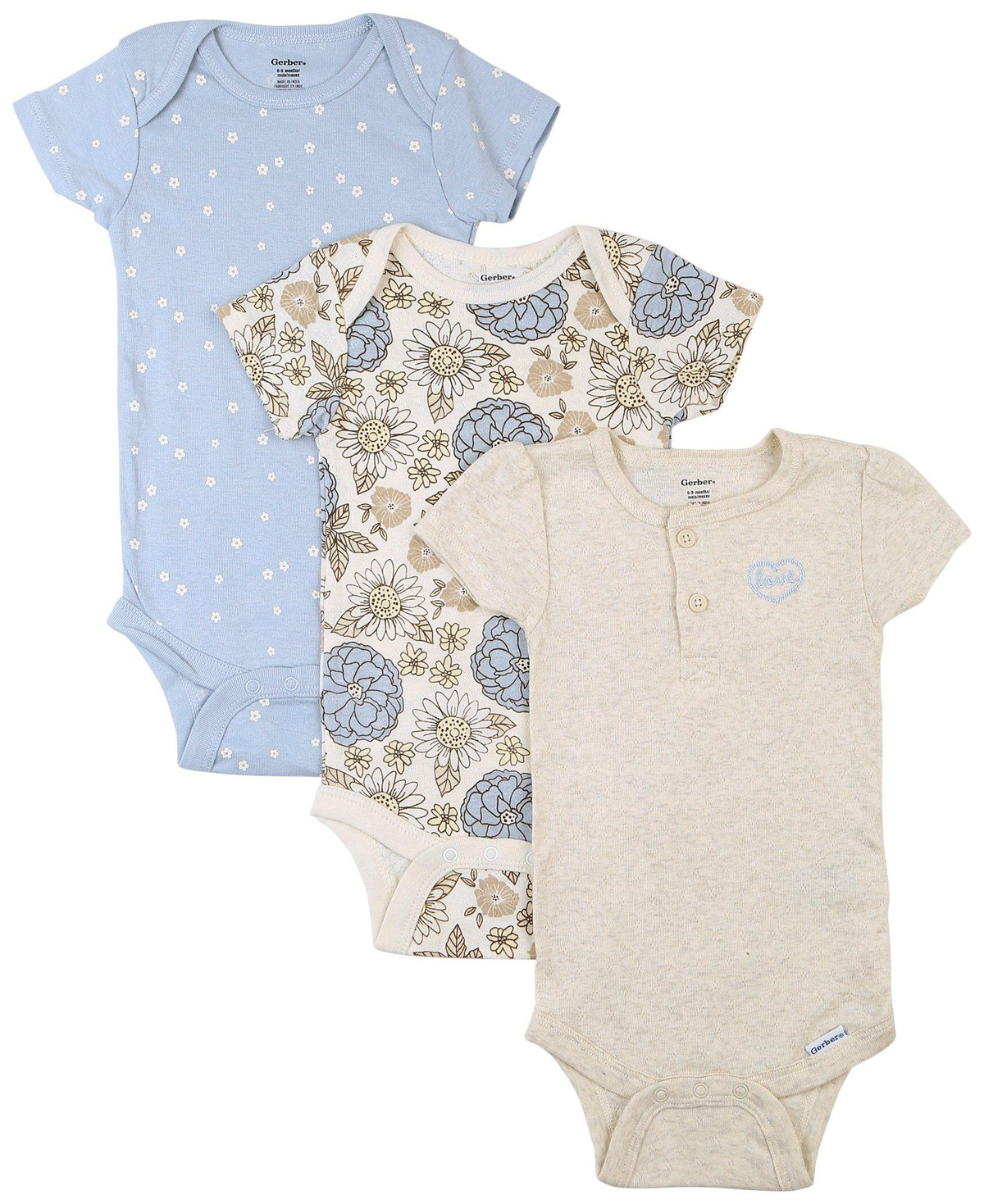 Dress your little one in timeless charm with Gerbers Baby Girls 3-Pack Short Sleeve Retro Floral Creepers. Each creeper features delightful retro floral prints and convenient snap button closures for easy changes. Made from 100% cotton, these creepers ensure ultimate comfort and breathability for your baby. Perfect for everyday wear, these adorable outfits combine style and practicality, making them a must-have in your babys wardrobe.