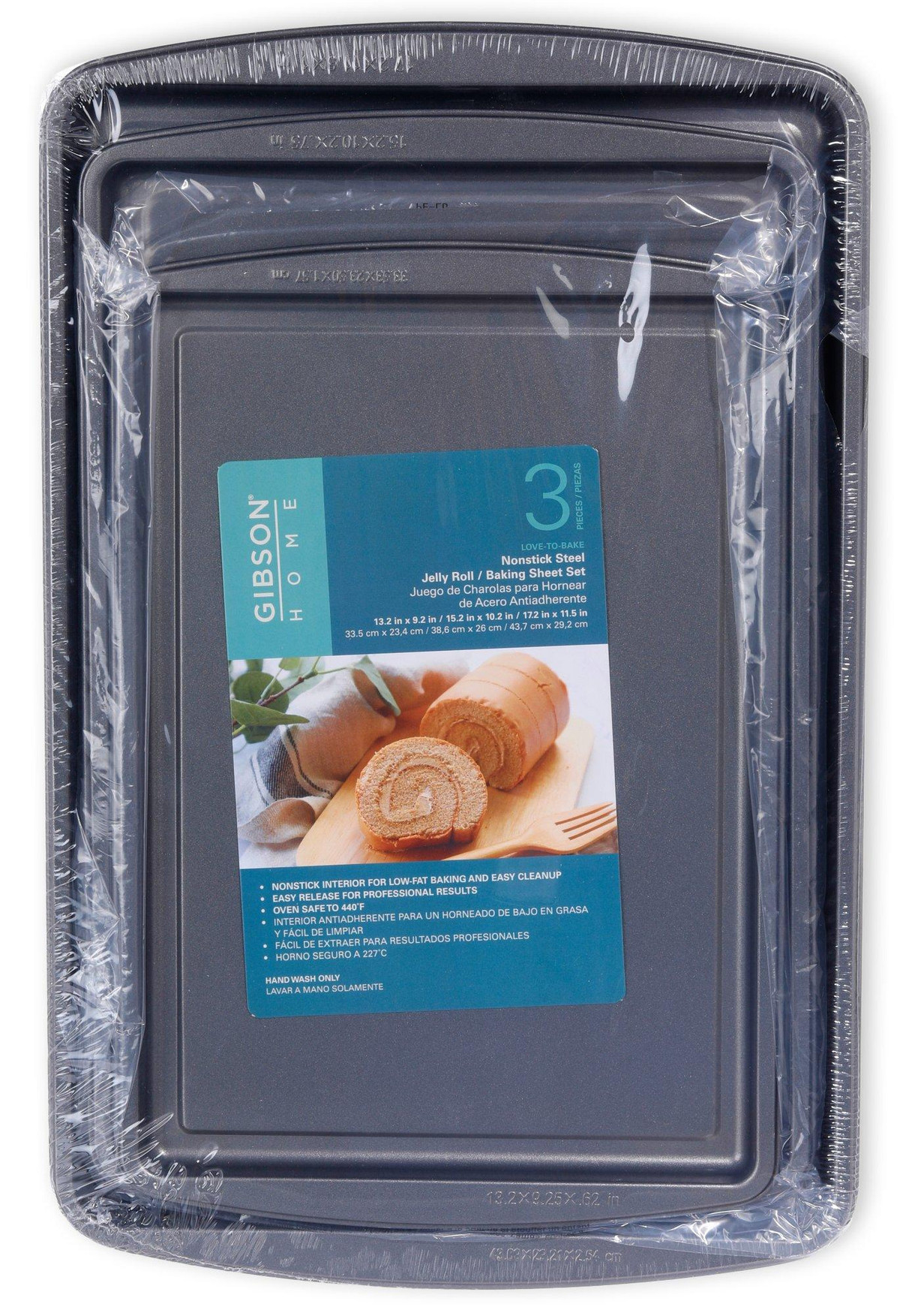 Crafted from durable steel, these baking sheets are designed for optimal heat distribution, ensuring your cookies, pastries, and more bake evenly every time. The sleek gray finish not only looks sophisticated in your kitchen but also complements any bakeware collection. Set comes with one 11 x 9 inch pan, one 15 x 10 inch pan, and one 17 x 11.5 inch pan, covering all the bases so you can be ready for anything!