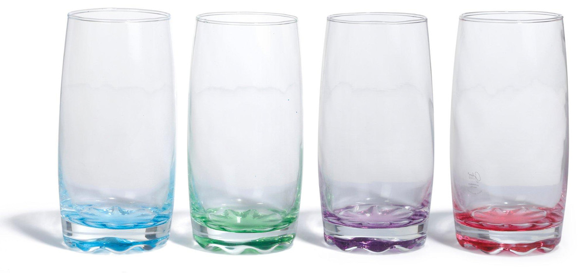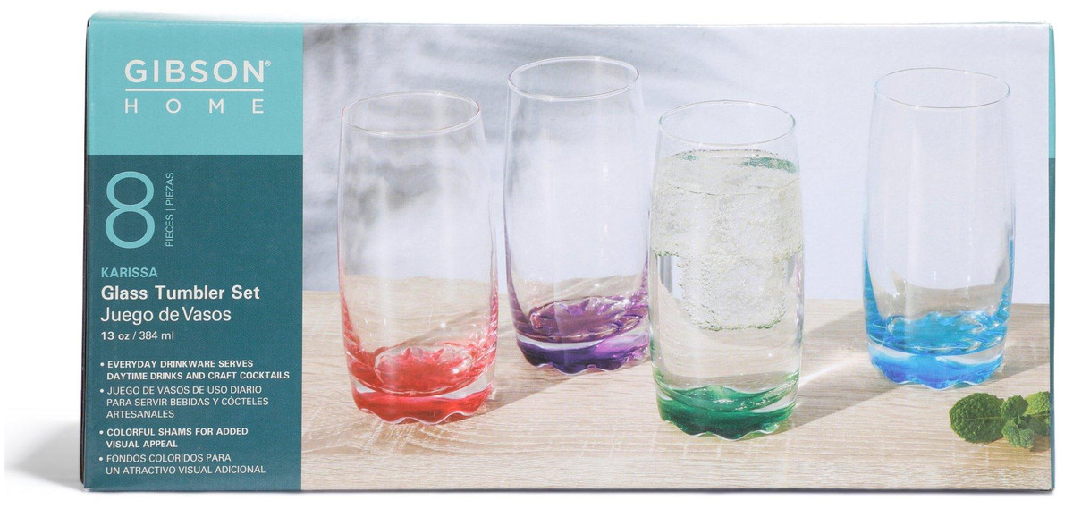 This 13 Ounce Colorful Tumbler Set from Gibson Home is designed with a teardrop shaped embossed exterior that sparkles with brilliance and clarity. Perfect for serving iced teas, cocktails, or any beverage of your choice, each piece complements any style of table setting. Whether you are celebrating with friends or enjoying a casual drink, this set will add a special touch to the occasion. Durable glass construction is dishwasher safe for easy cleanup.