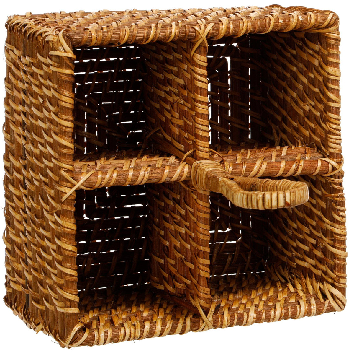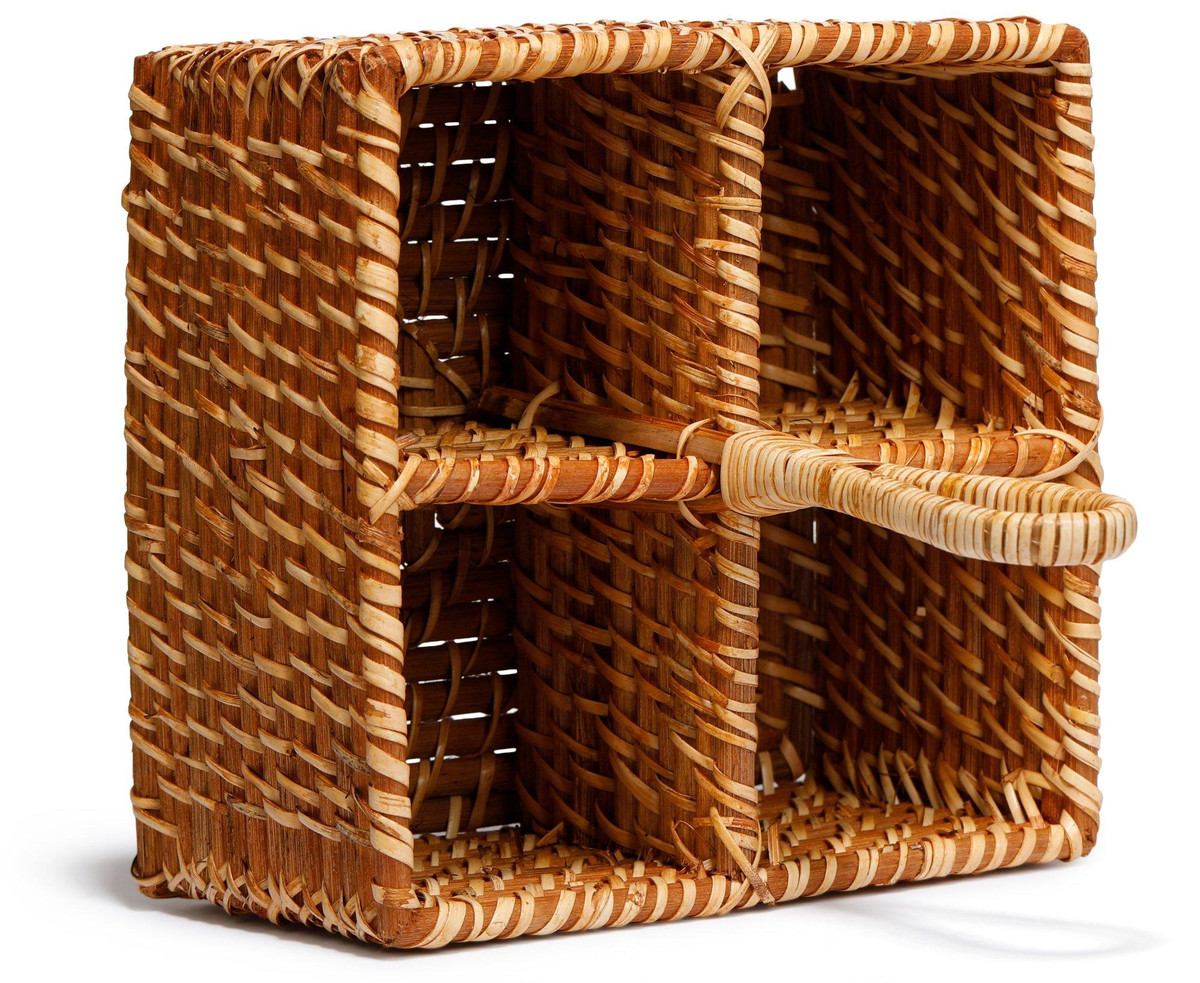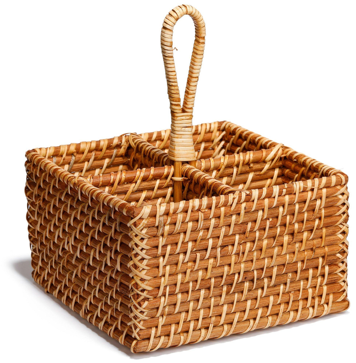 Organize your dining essentials with our Rattan Flatware Caddy. Measuring 8 inches by 8 inches by 5 inches, this caddy features four sections, perfect for neatly storing your flatware, napkins, or other dining accessories. The natural rattan material adds a rustic charm to your table setting, while its sturdy construction ensures durability. Ideal for both indoor and outdoor dining, this caddy combines functionality and style, making it a must-have for any home.