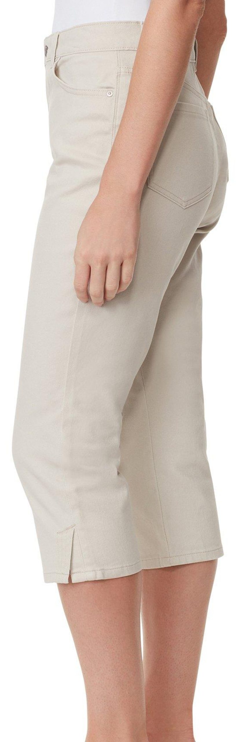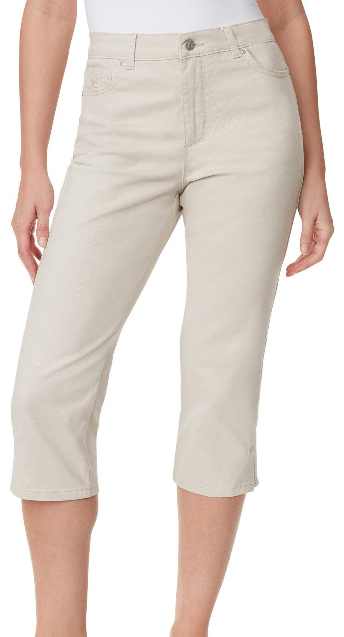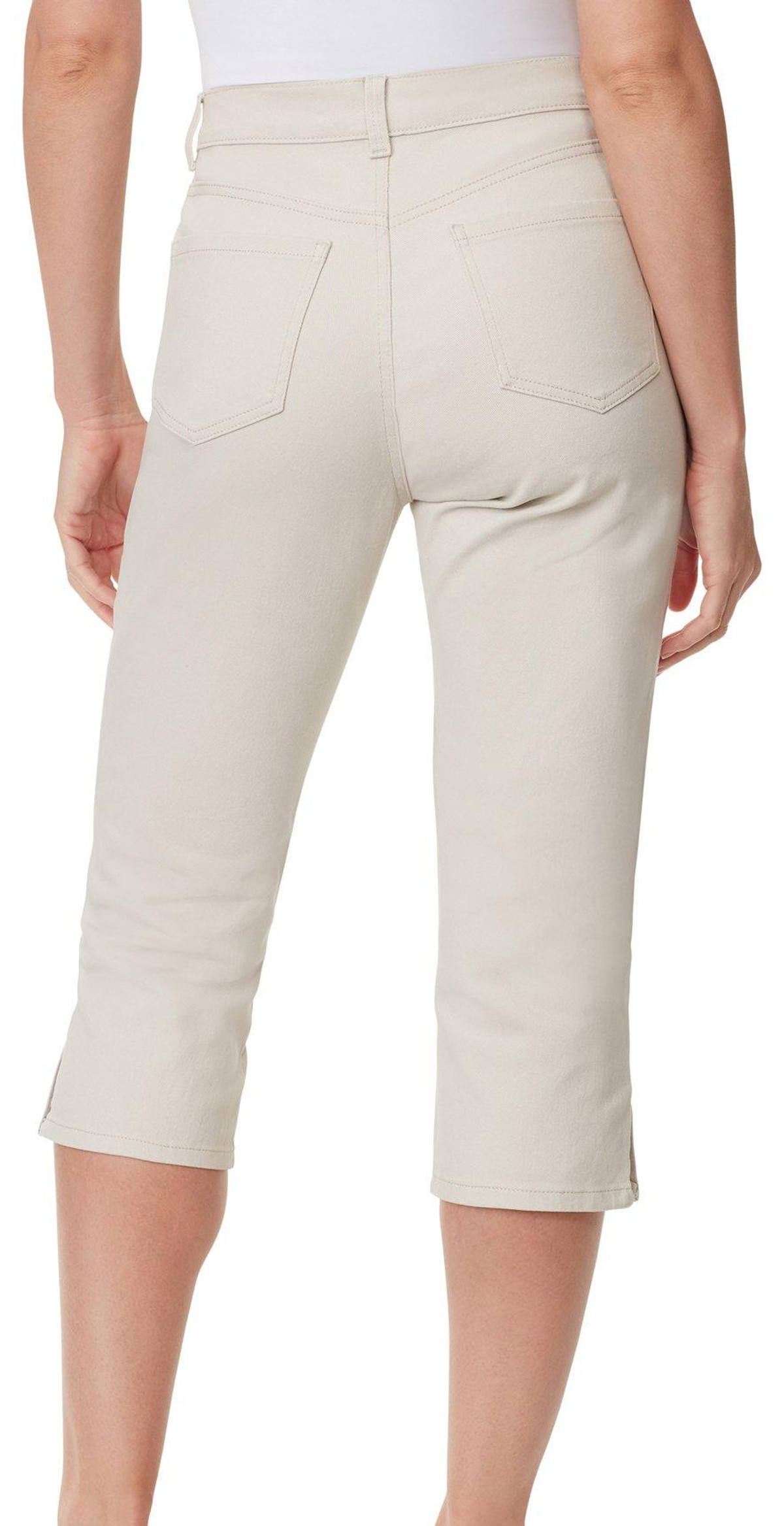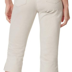 Enhance your wardrobe with the Solid Amanda Capris. Designed with an all-around slimming effect, these capris offer a flattering fit that accentuates your silhouette. They feature double front and back pockets for practical storage and a side ankle hem split for added style. Inseam measures approximately 19 in. Fabrication is 98% cotton and 2% spandex.