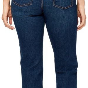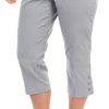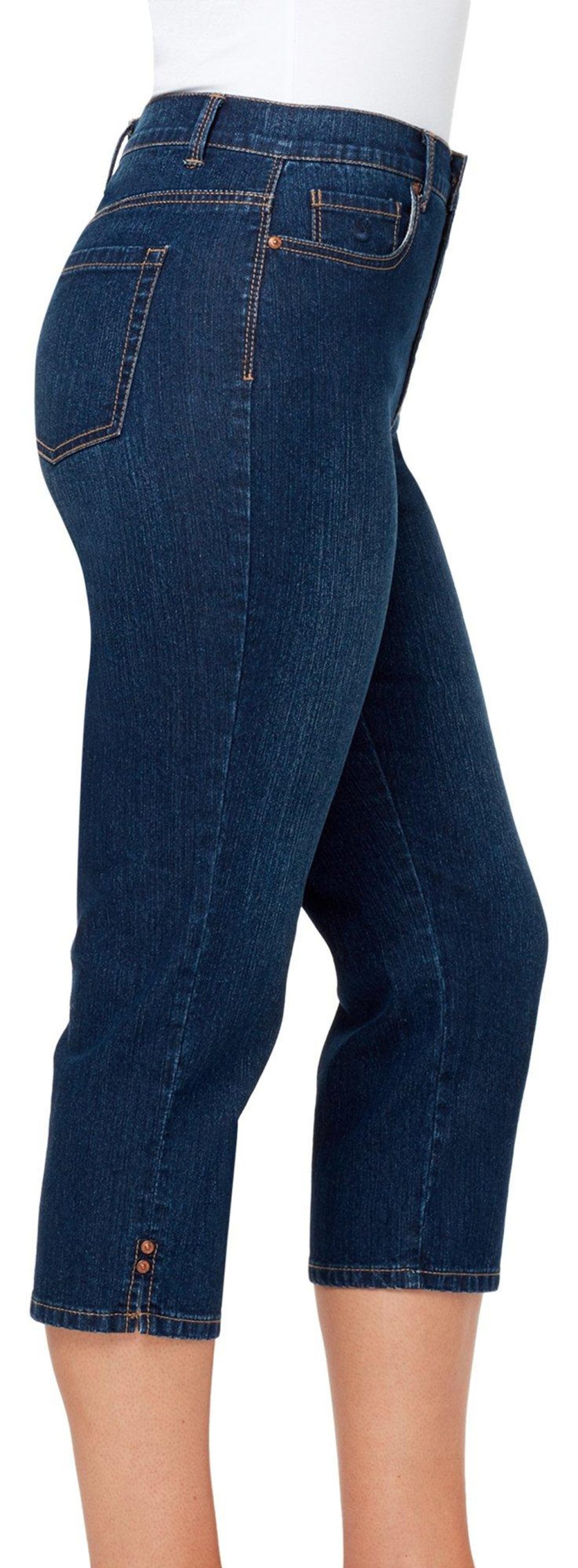 These Amanda capris from Gloria Vanderbilt feature a lightweight denim fabric, an elastic waistband, zipper and one-button closure, five-pocket styling, and a classic fit. The inseam measures approximately 21 in. Fabrication 63% cotton, 12% viscose, 24% polyester, 1% spandex.