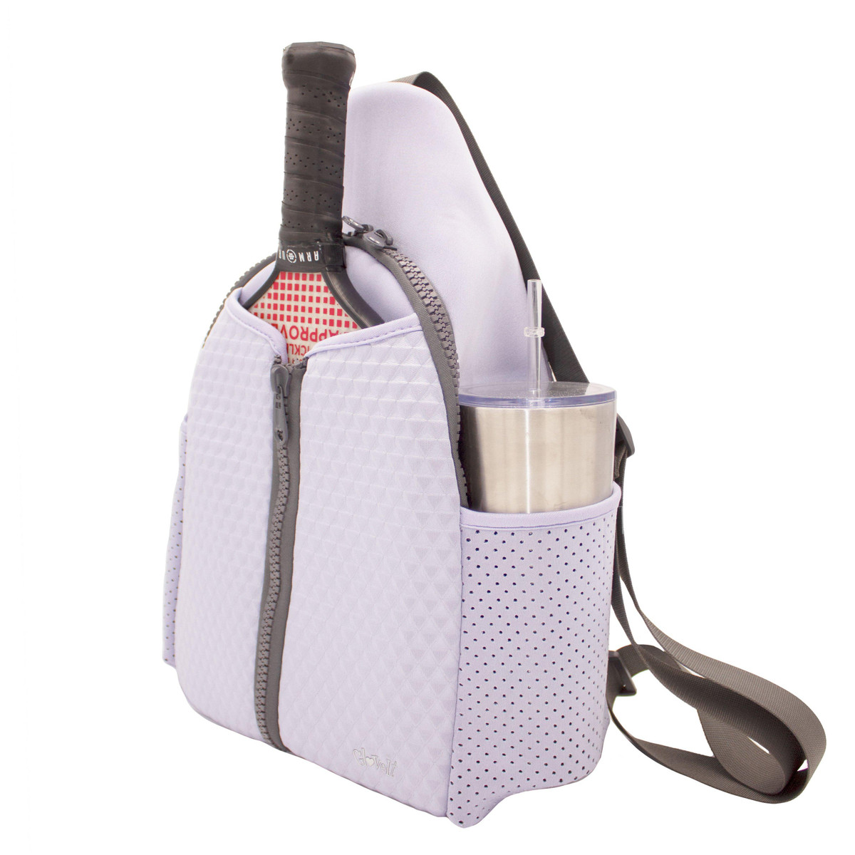Stay organized on the court with the Iris Pickleball Sling Bag! Crafted from durable, easy-to-clean neoprene fabric, this stylish modern bag features a front pocket for up to 2 paddles, an interior pocket for shoes, towels, glasses and more, and a back privacy pocket for personal items. With side pockets for your water bottle and balls, you’ll have everything you need to be ready to play. Great for dinkers and pickleball pros!Measures 10 in. x 6 in. x 16 in.