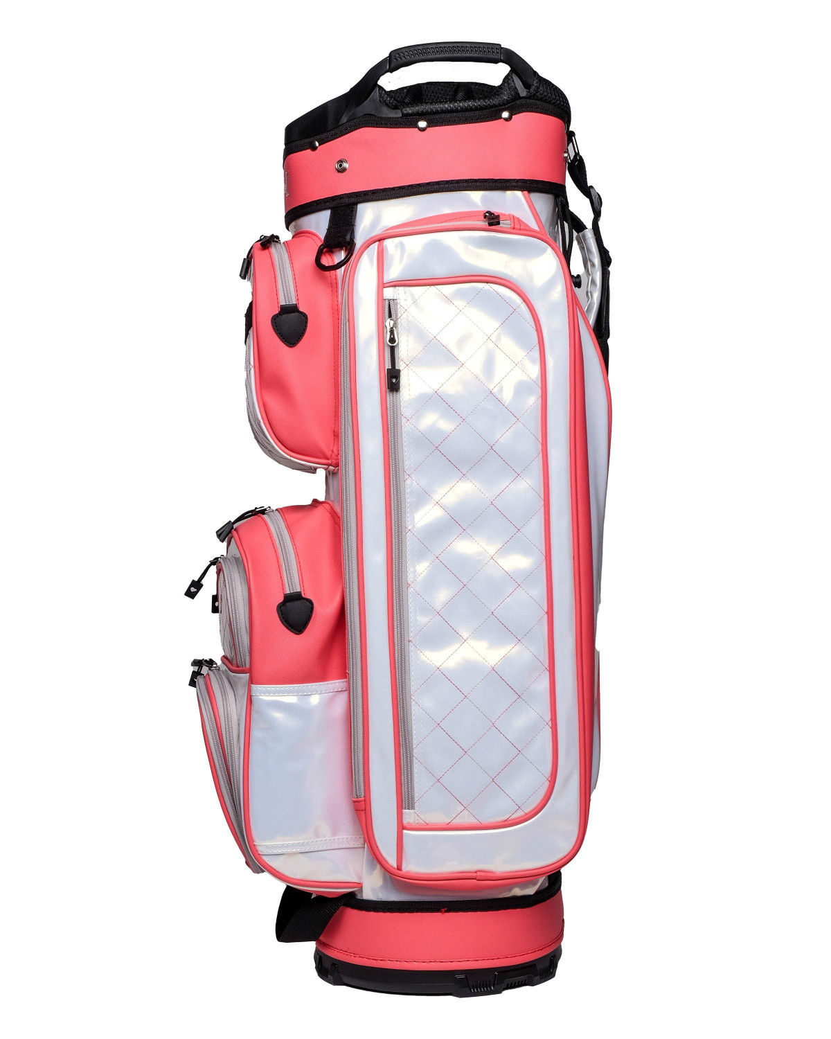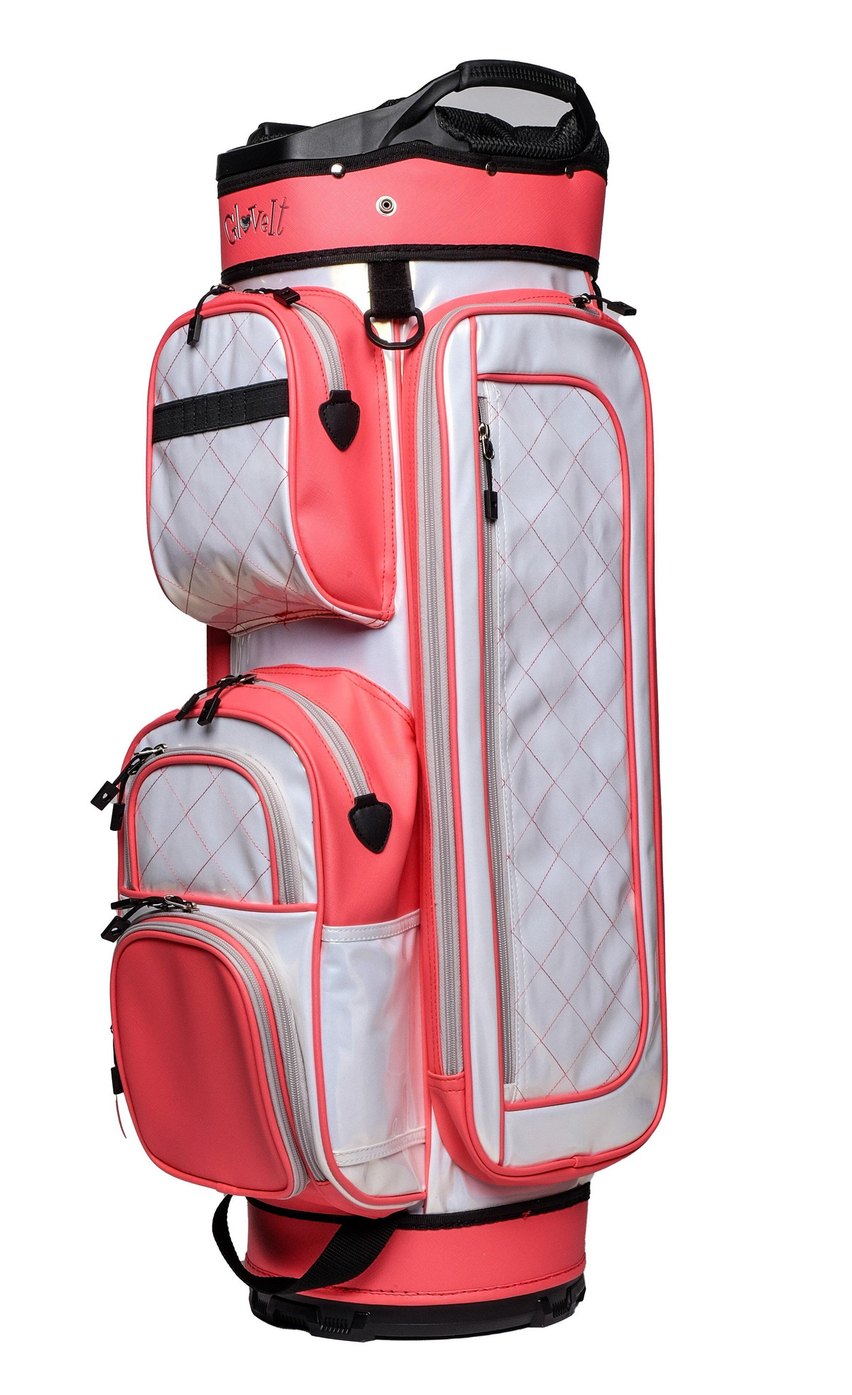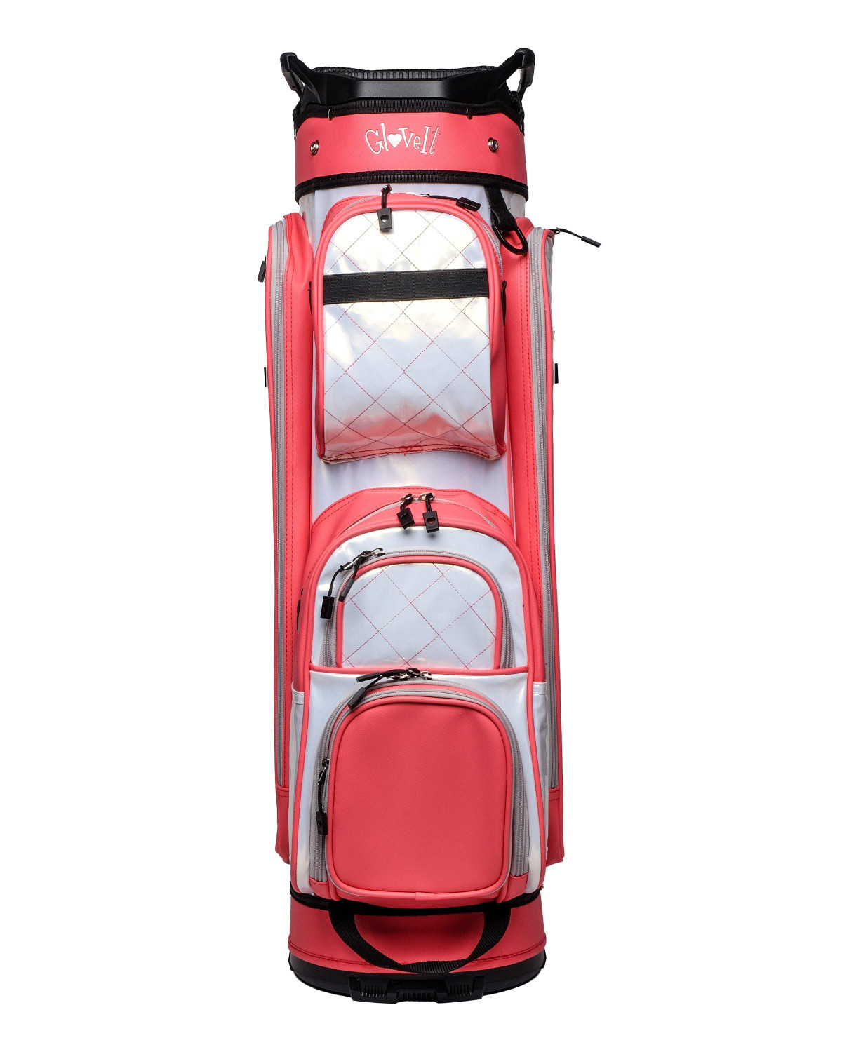 Have a fashionable day on the golf course with the Glove It Naples Signature Womens 15 Way Cart Golf Bag. Each golf bag features 15 full length dividers, easy access pockets including a velour-lined valuables pocket, an insulated cooler pocket, and a large apparel pocket – and an easy lift handle system. Glove It golf bags are a must have for any fashion forward golfer! Weight 5.7-6.4 lbs.