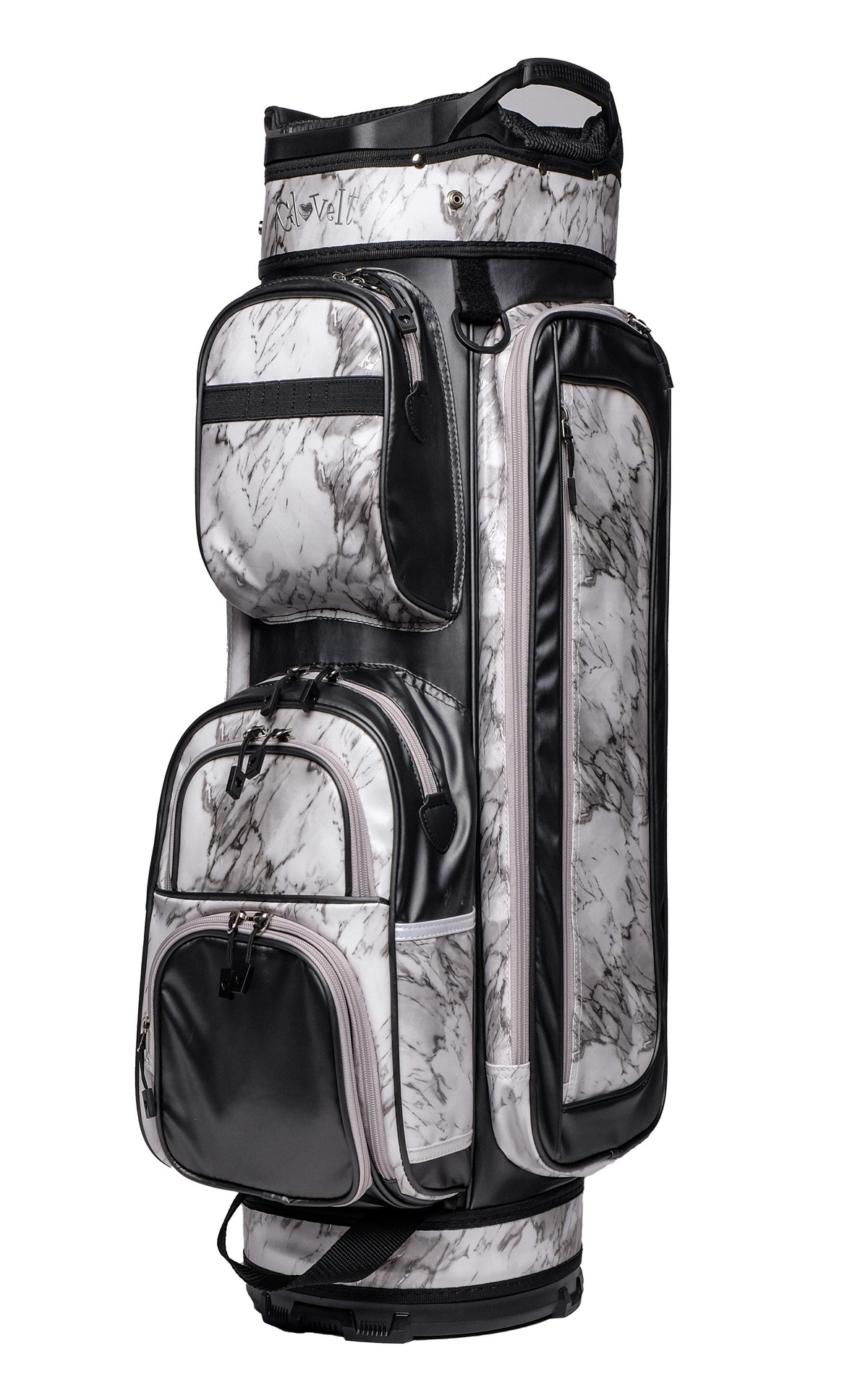 Have a fashionable day on the golf course with the Glove It Palm Beach Signature Womens 15 Way Cart Golf Bag. Each golf bag features 15 full length dividers, easy access pockets including a velour-lined valuables pocket, an insulated cooler pocket, and a large apparel pocket – and an easy lift handle system. Glove It golf bags are a must have for any fashion forward golfer! Weight 5.7-6.4 lbs.