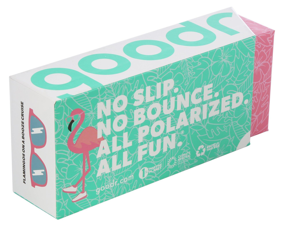 Grab your flamingos and piña coladas; these Flamingos on a Booze Cruise OG sunglasses are a yacht party for your face. The no slip, no bounce pink frames will stay put no matter how bumpy the ride gets, and teal polarized lenses have UV400 protection to protect your peepers.