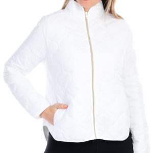 This medium-weight knit jacket features a solid color design on soft quilted fabric, front full zipper closure, two front slash hand pockets, mock collar, and a modern classic fit. The top length measures approximately 26 in.