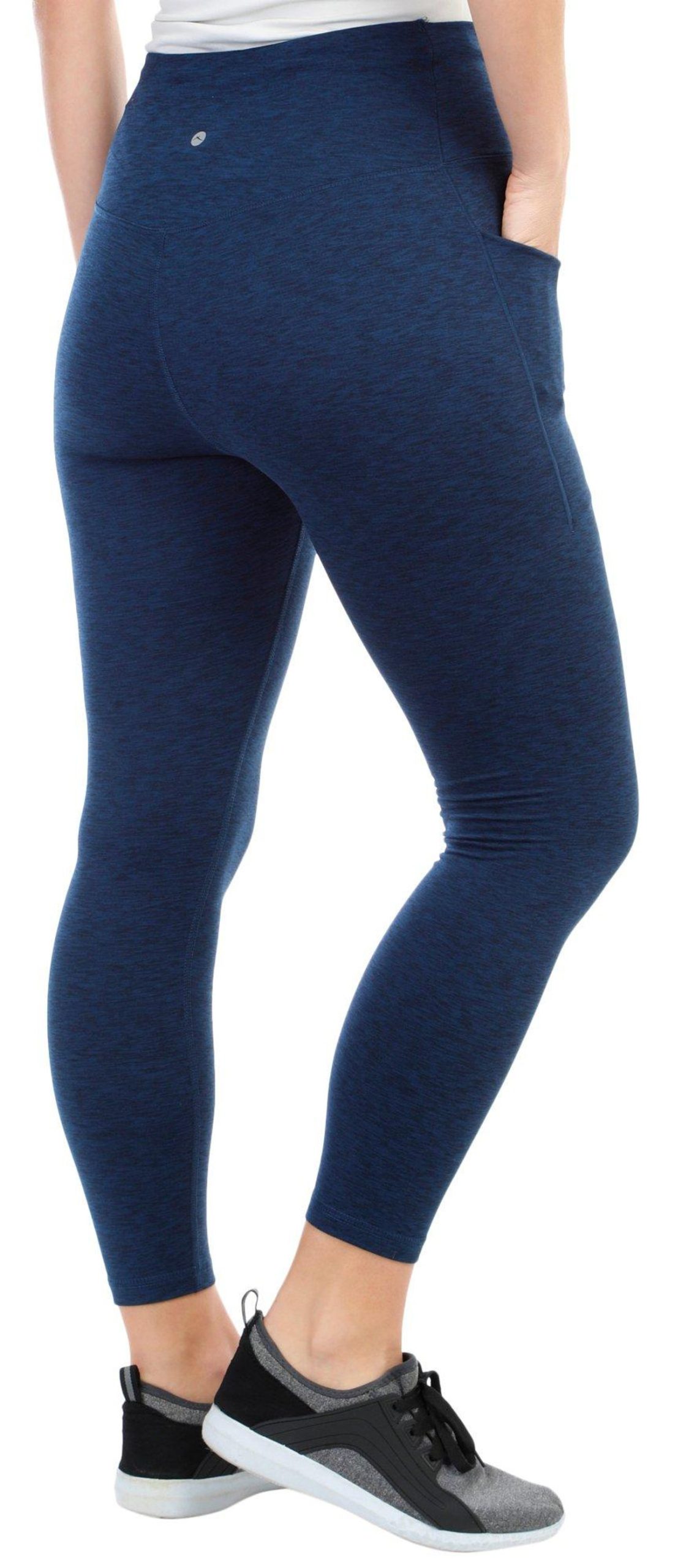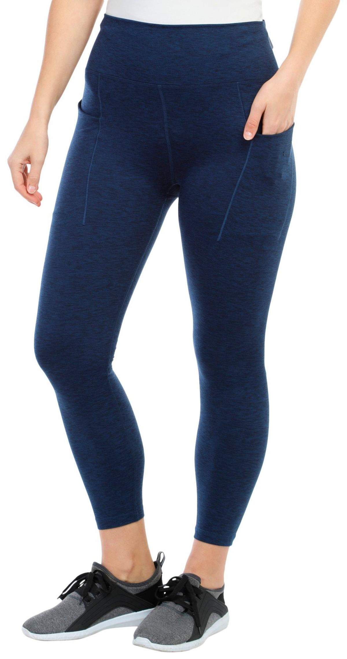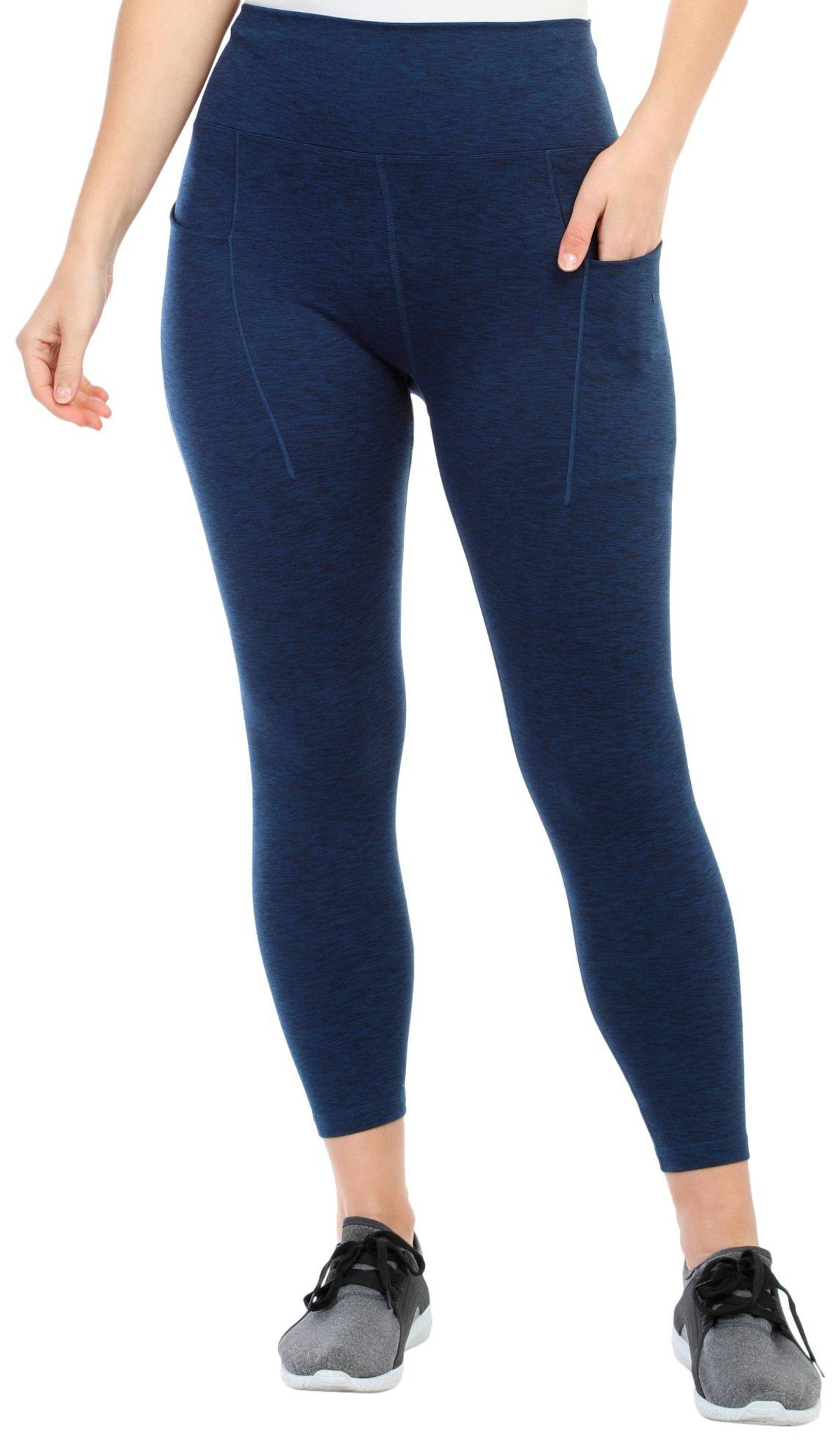 Get ready for your next active adventure in these comfortable and versatile legging! They feature a heathered print pattern, soft and stretchy fit, and double side pockets. Fabrication is 85% polyester and 15% spandex. Inseam measures approximately 26 in.