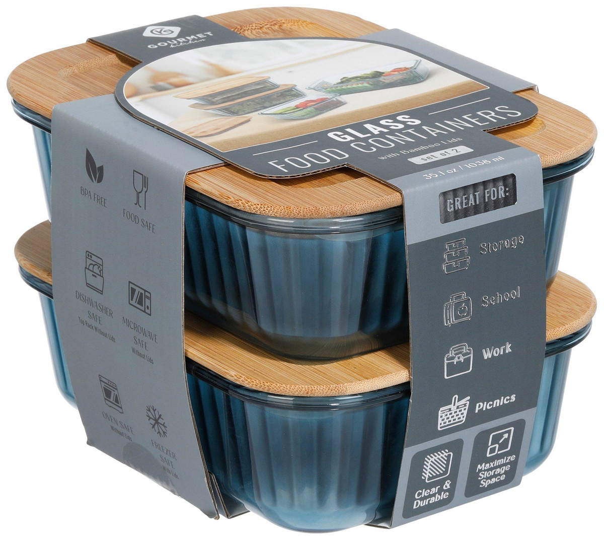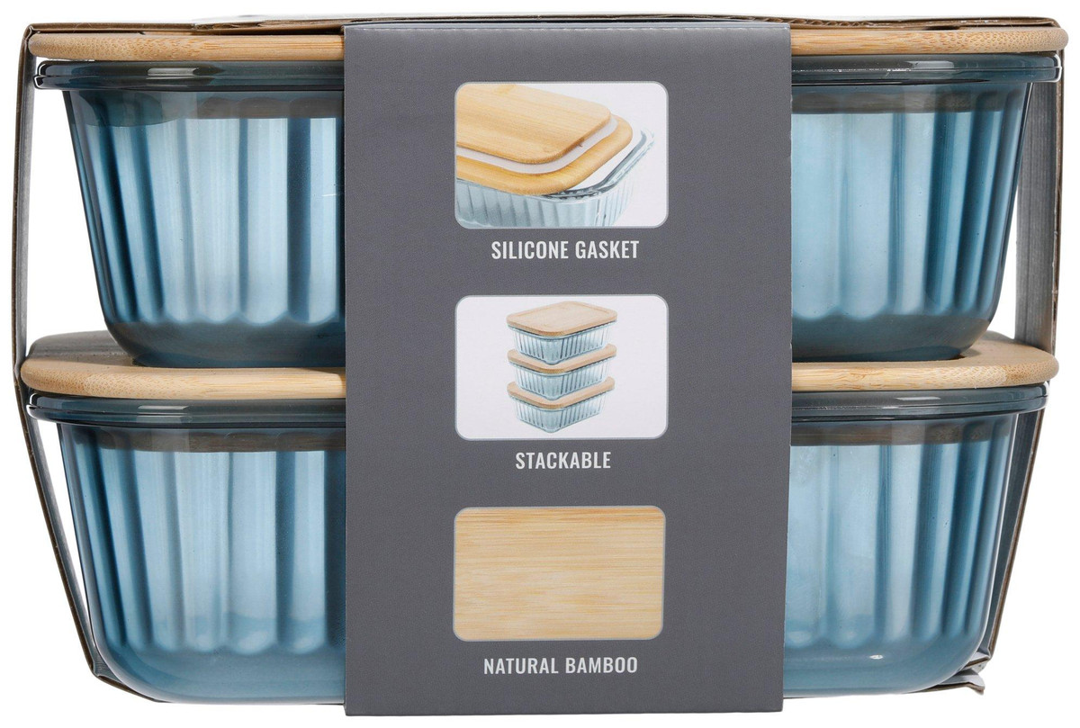 Keep food fresh and organized with this 2-pack glass storage set featuring eco-friendly bamboo lids. These containers are perfect for meal prep, leftovers, and on-the-go storage. Made from durable, stain- and odor-resistant glass, these containers are oven, microwave and dishwasher safe (not the lids). Measures approximately 8 in x 6 in x 2.5 in.