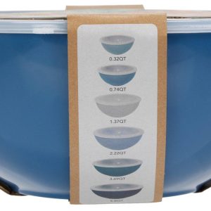 This set of 6 bowls with included lids is made from durable recycled plastic and designed to keep food fresh. The bowls nest for easy, space saving storage, making them ideal for meal prep, leftovers, and everyday use. A practical, eco friendly addition to any kitchen. Includes .32 QT bowl, .74 QT bowl, 1.37 QT bowl, 2.22 QT bowl, 3.69 QT bowl, and 5.8 QT bowl.