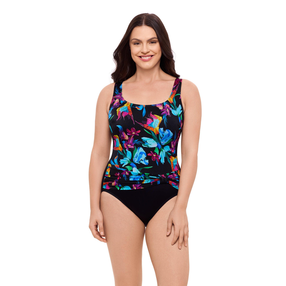 Enjoy both fashion and comfort with this chic Womens Great Lengths Perfect Harmony sash swimsuit, ideal for any water activity. Features: wirefree, molded cups, wrap side hem front and adjustable straps.