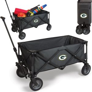 The Adventure Wagon is a utility wagon with heavy-duty wheels & telescopic handle that folds into a compact size and includes a fitted cover. Made of 600D polyester with a powder coated steel frame. Measures: 35.6” x 18.9” x 21.9” open, 10” x 11” x 30” closed.