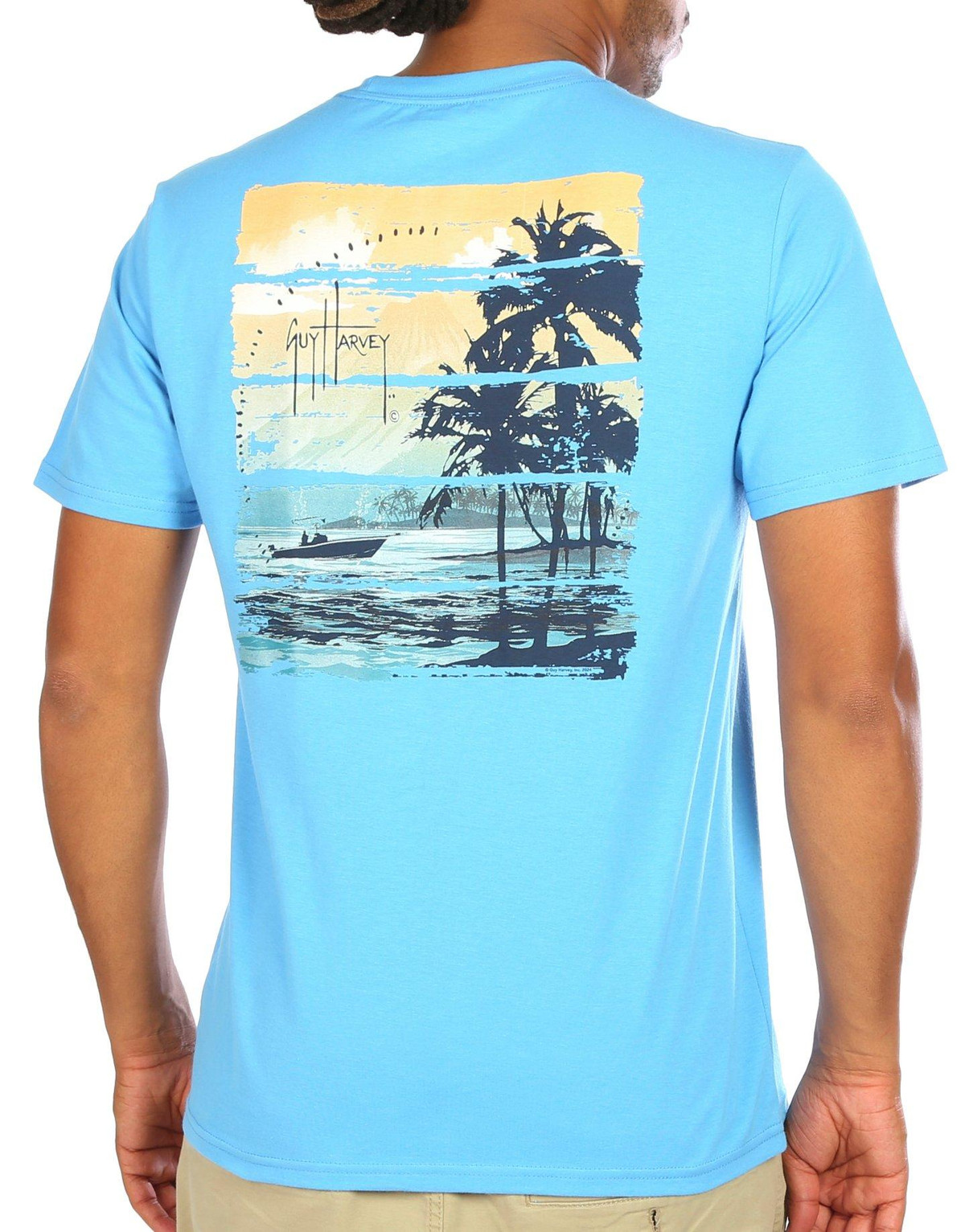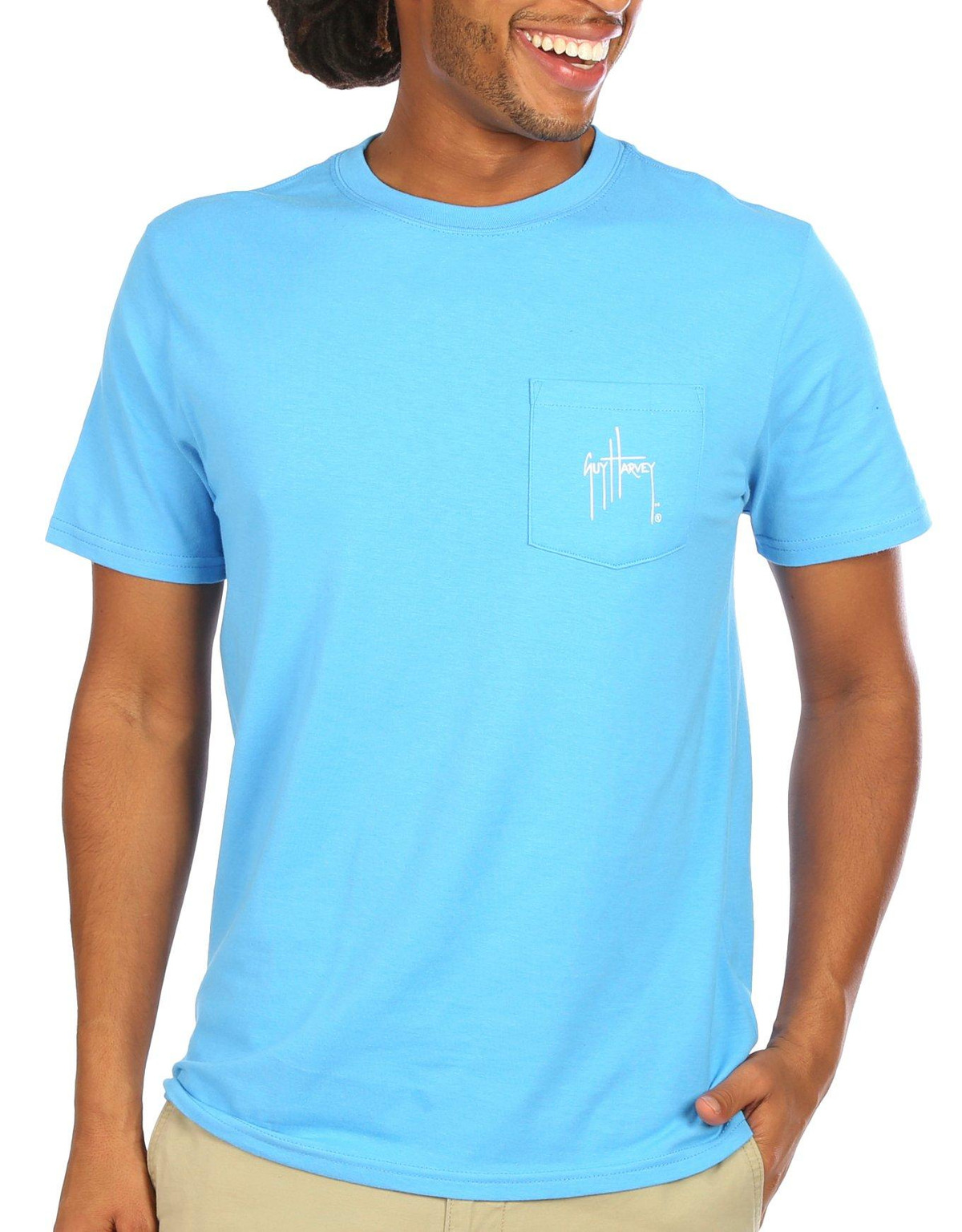 This short sleeve top features lightweight breathable cotton fabric, brand logo and graphic design on the back, a logo on the chest pocket, and a flexible crew neckline.