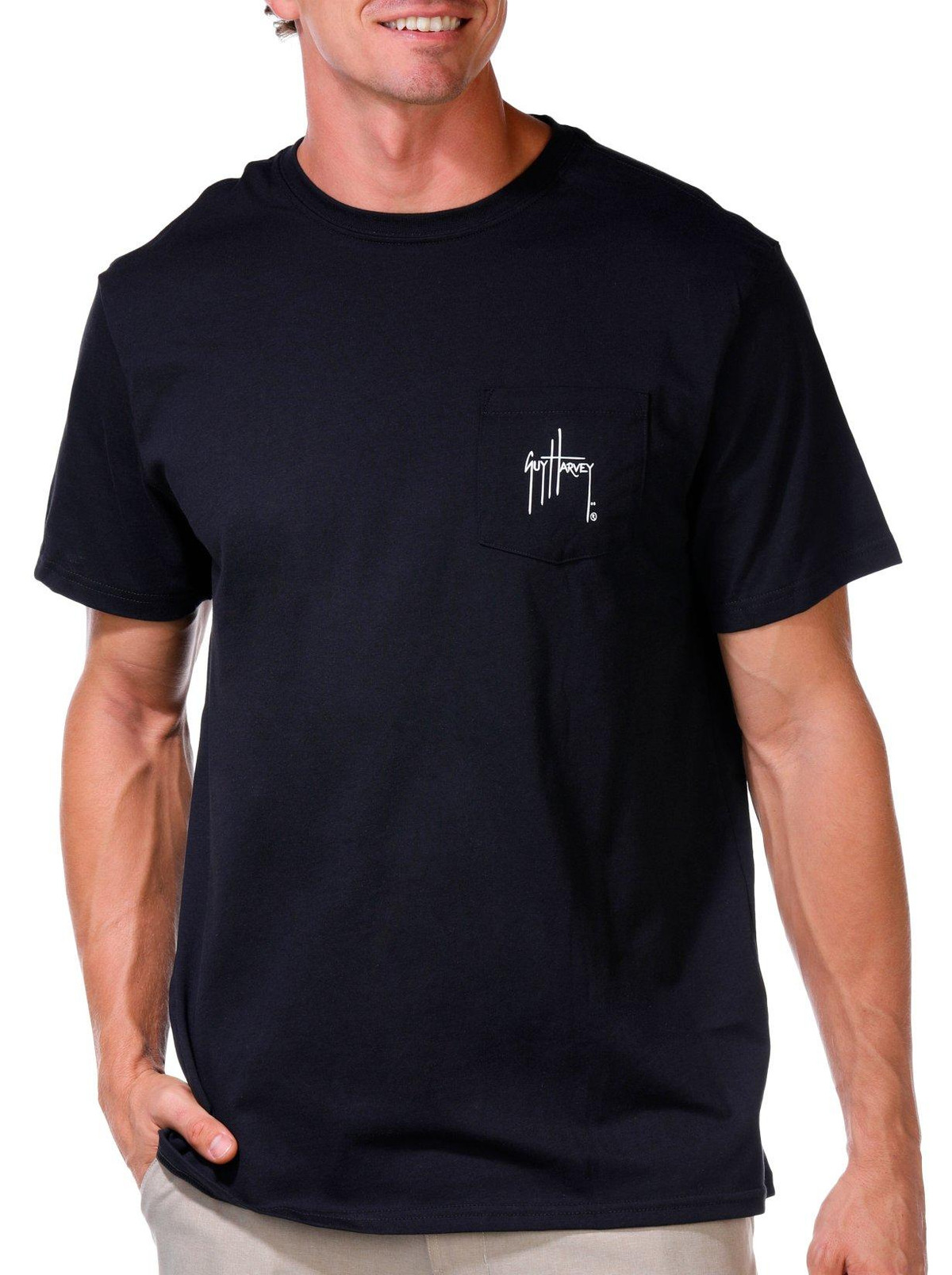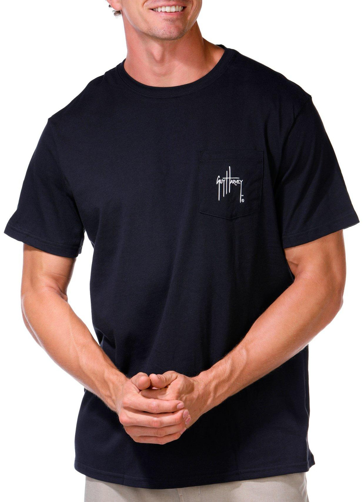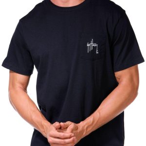 This mens white night time pocket t shirt features a chest pocket with brand script on the front and a detailed fish graphic on the back. With its clean design and soft fabric, it offers a laid back look perfect for casual wear. Fabrication 100% cotton