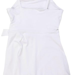 Watch her shine on and off the court in the Big Girls’ Sleeveless Tennis Dress with Skort. Designed with a stylish wrap skirt that adds graceful movement, its perfect for twirling and active play. Featuring a solid color design, charming side bow detail, and a fully lined skort, this dress blends elegance and function, ideal for tennis matches or special occasions. Fabrication is: Body – 87% polyester, 13% elastane; Skort – 92% polyester, 8% elastane. Dress length measures approximately 31 in.