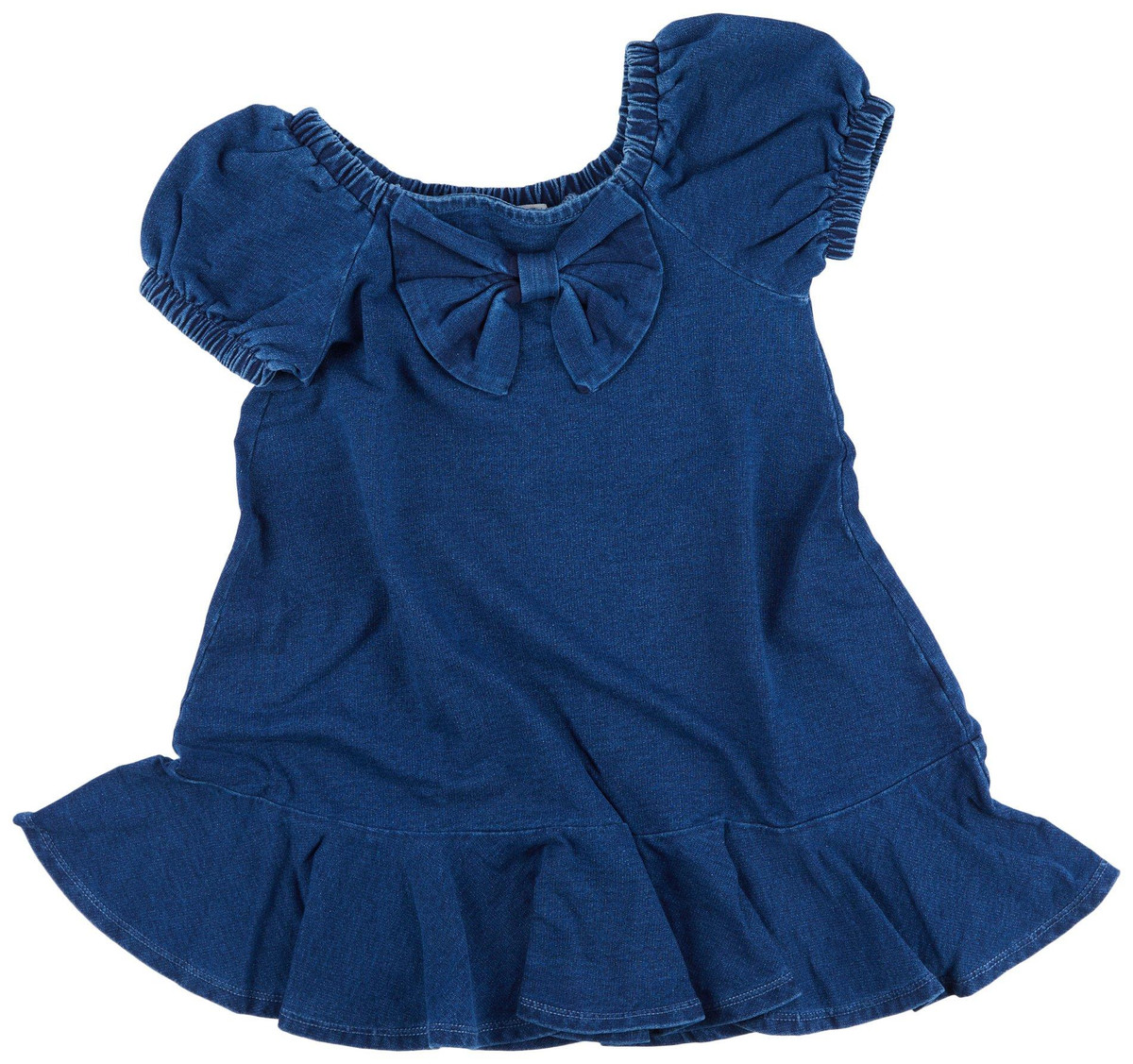 Pretty puff sleeves frame the cheerful bow adorning this cotton-blend dress that’s perfect for your baby’s next special occasion. Slips on over head. Fabrication Type: 86% cotton, 10% polyester, 4% spandex.