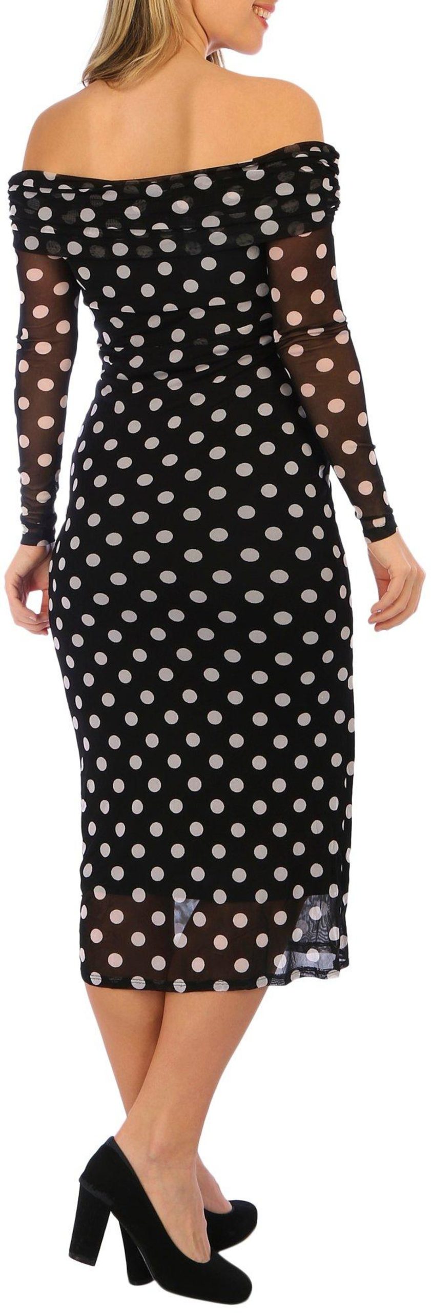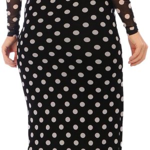 Introducing the Women’s Polka Dot Mesh Midi Dress, crafted from a comfortable blend of polyester and spandex. This charming dress features a special polka dot print, an elegant off-the-shoulder design. With a length of 41 inches, it offers a perfect mix of style and sophistication. Ideal for any occasion, this dress adds a playful yet refined touch to your wardrobe, making you look effortlessly chic.