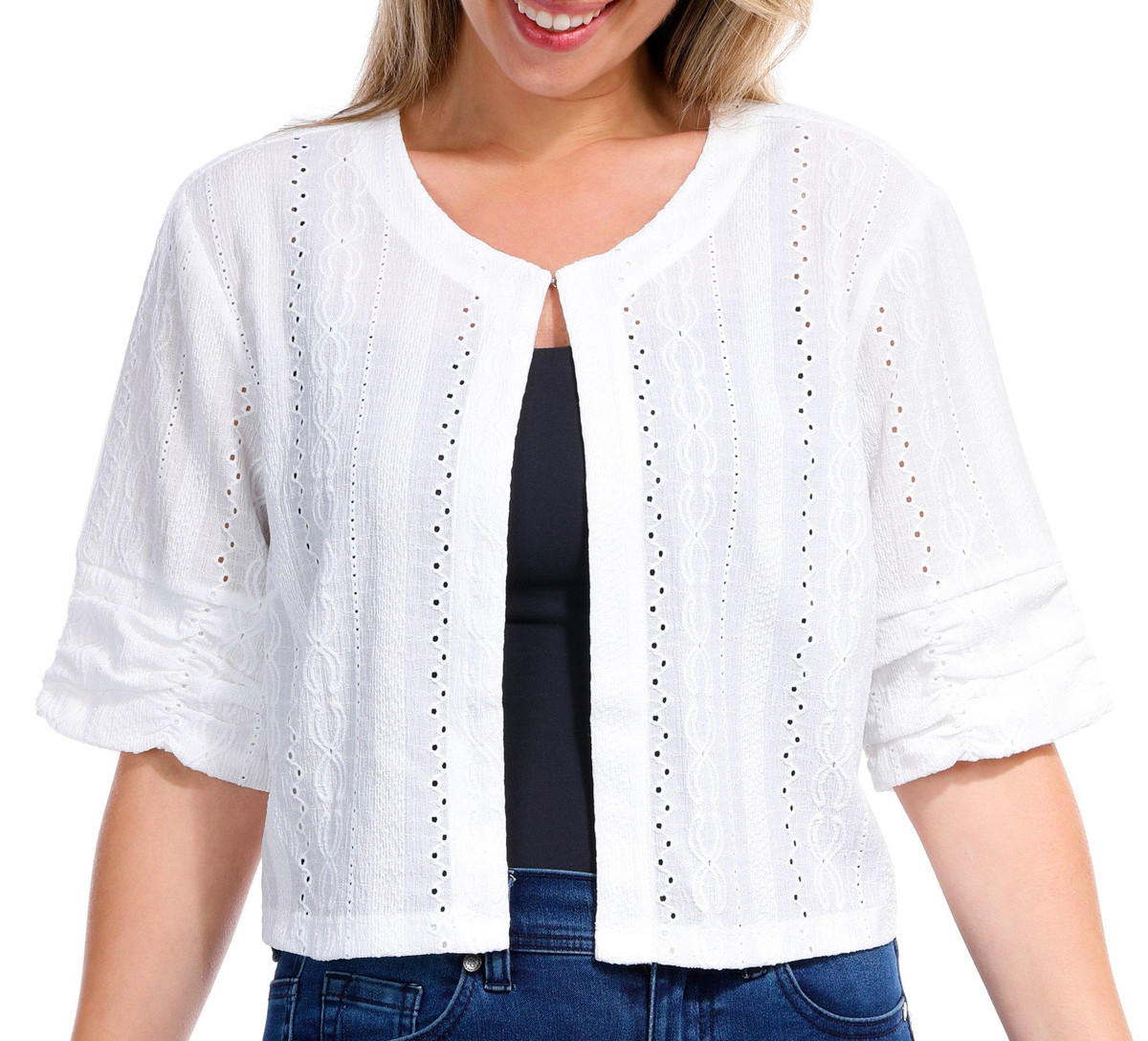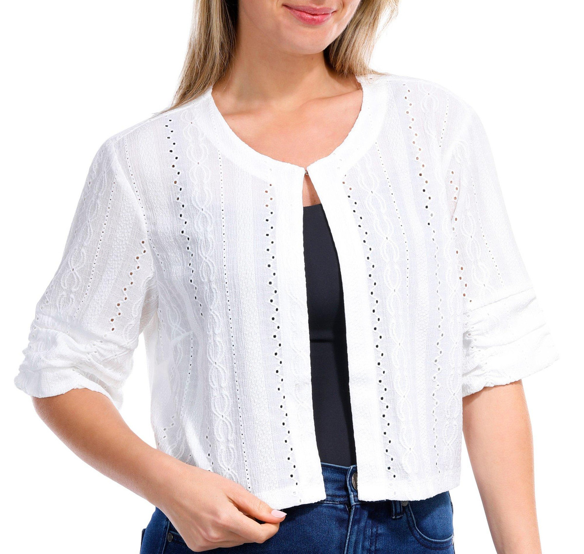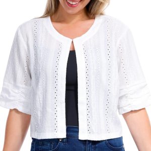 Enhance your wardrobe with this Short Sleeve Jacquard Knit Cardigan. Featuring an open style front, this cardigan is perfect for layering over your favorite tops and dresses. The jacquard knit fabric adds a touch of texture and sophistication, making it a versatile piece for any occasion. Whether you’re dressing up for a special event or adding a stylish layer to your everyday look, this cardigan ensures you stay chic and comfortable. Fabrication is 95% polyester, 5% spandex.
