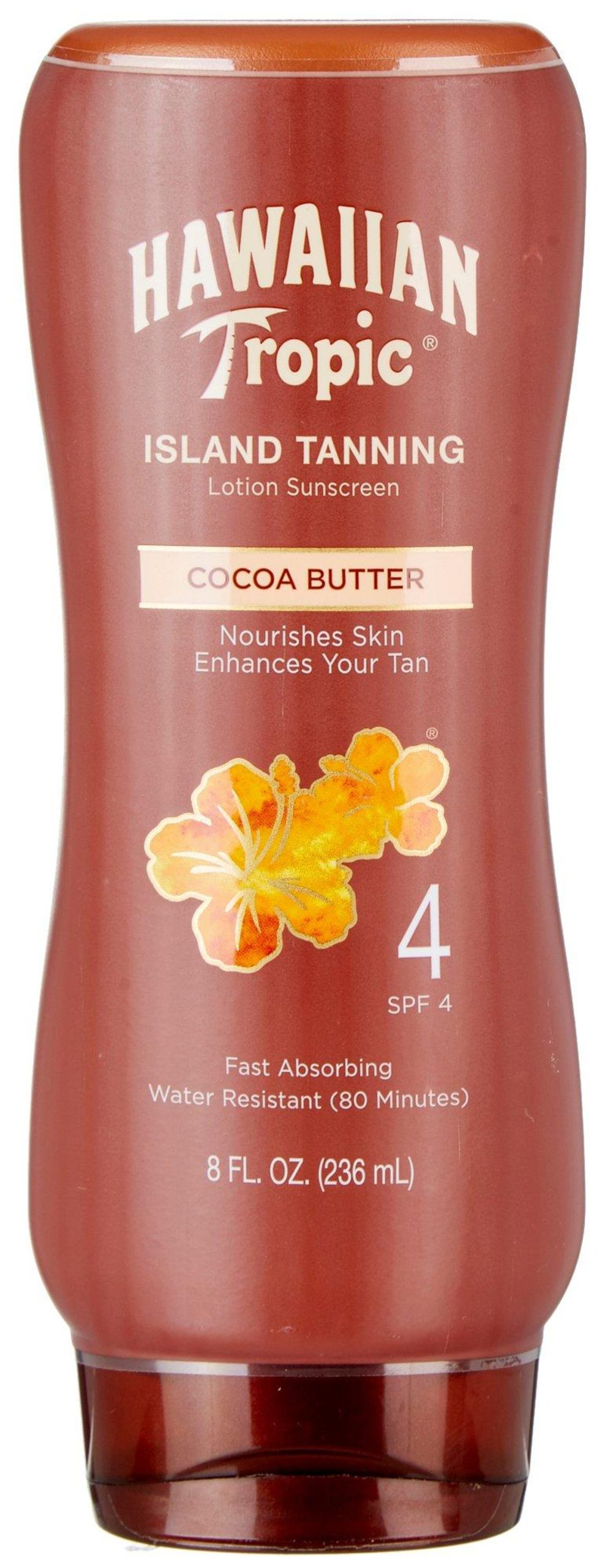 Hawaiian Tropic Island Tanning SPF 4 Sunscreen Lotion contains cocoa butter to nourish yor skin and enhance your tan. Fast absorbing and water resistant for up to 80 minutes. 8 fl. oz.