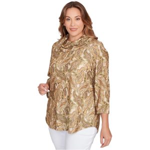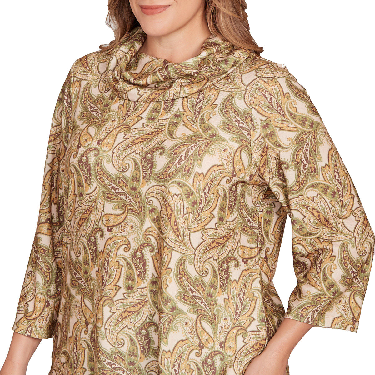 Stay cozy and stylish in this printed hatchi 3/4 sleeve cowl neck top, featuring a soft texture and bold print for effortless everyday flair. The top length measures 29 in. Fabrication 97% polyester, 3% spandex.