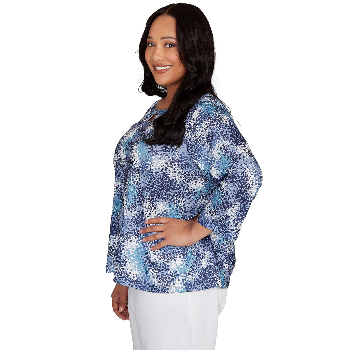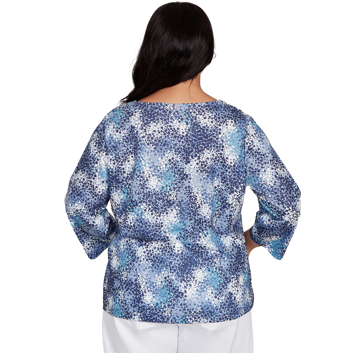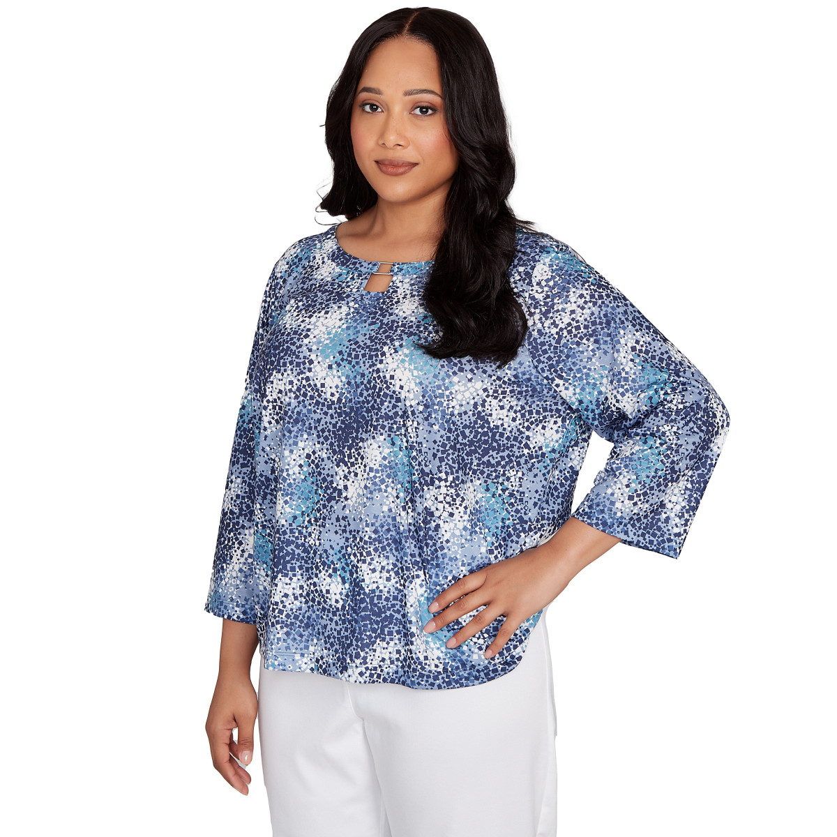 Make a bold statement with this Hearts of Palm graphic top, featuring a unique square ring neckline and stylish 3/4 sleeves. Designed to turn heads, this eye-catching piece blends comfort with modern flair, perfect for elevating your everyday look. The top length measures 27 in. Fabrication 100% polyester.