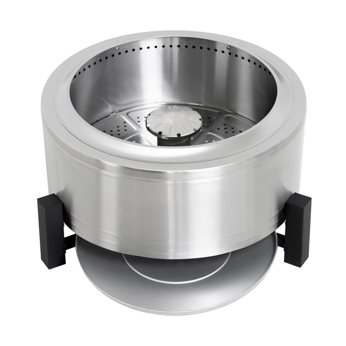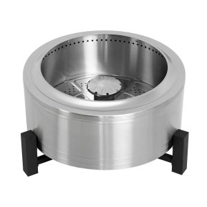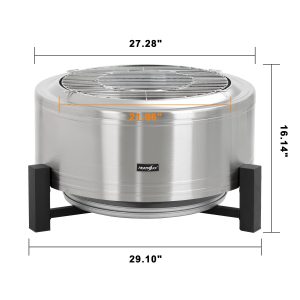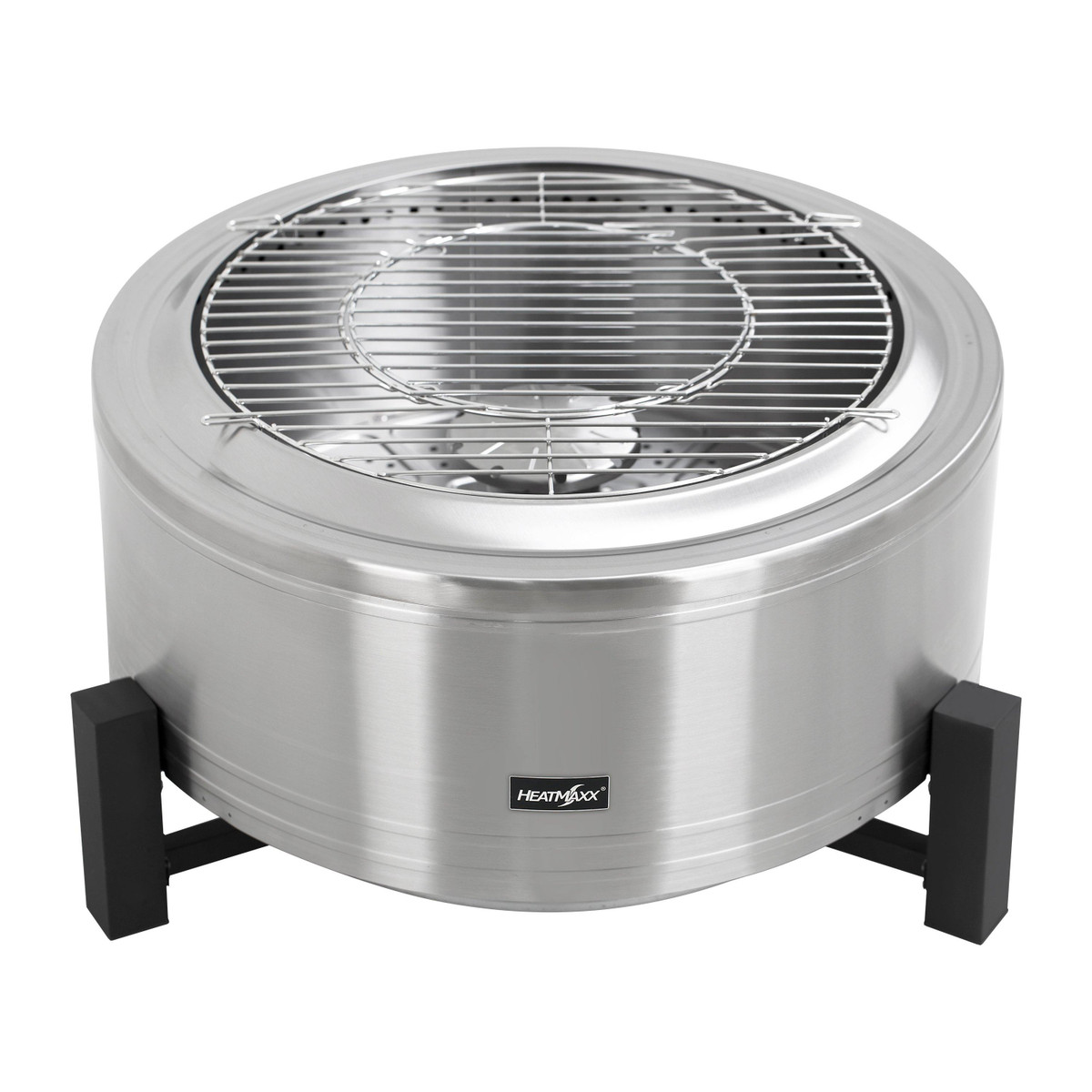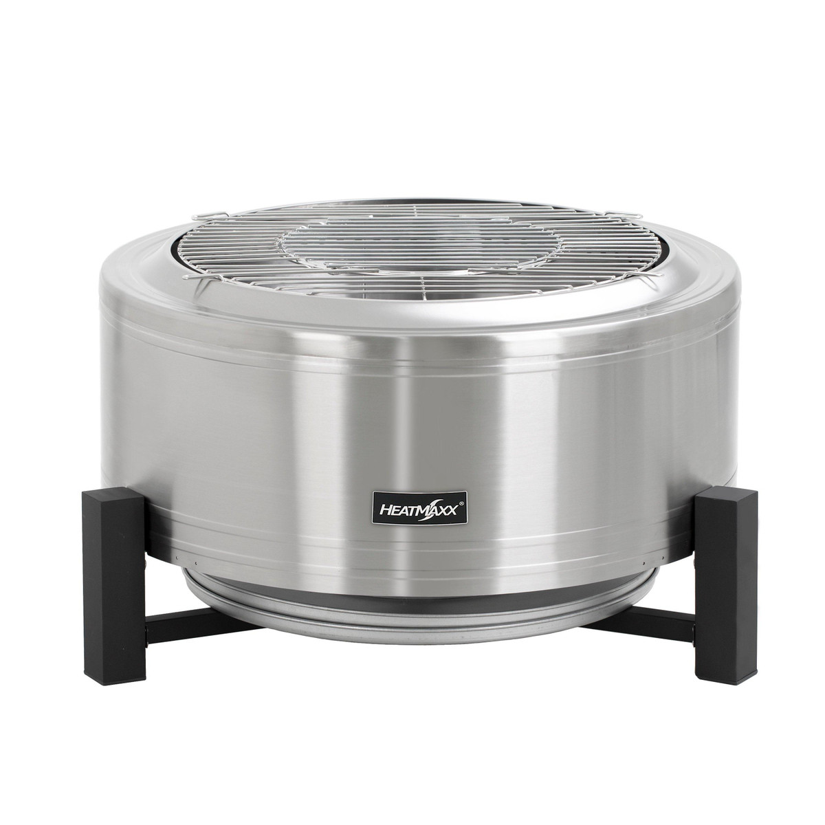 Enhance your outdoor experience with the Heat Maxx 27 in. Round Smokeless Fire. Crafted from stainless steel, it features a patent-pending Turbo technology combustion system for a superior fire with minimal smoke and ash. An air chimney inside the fire bowl creates a low bonfire effect. A double-walled design provides insulation, reducing external surface temperature for safety. Includes three steel legs for stability. Measures 29 in. diameter x 16 in. H.
