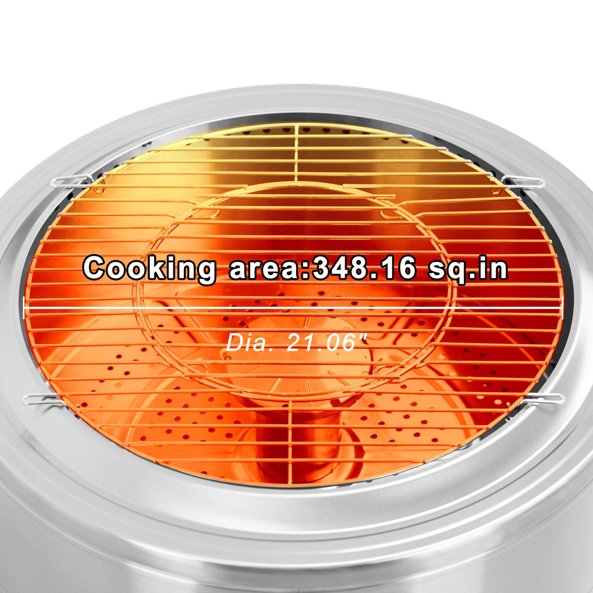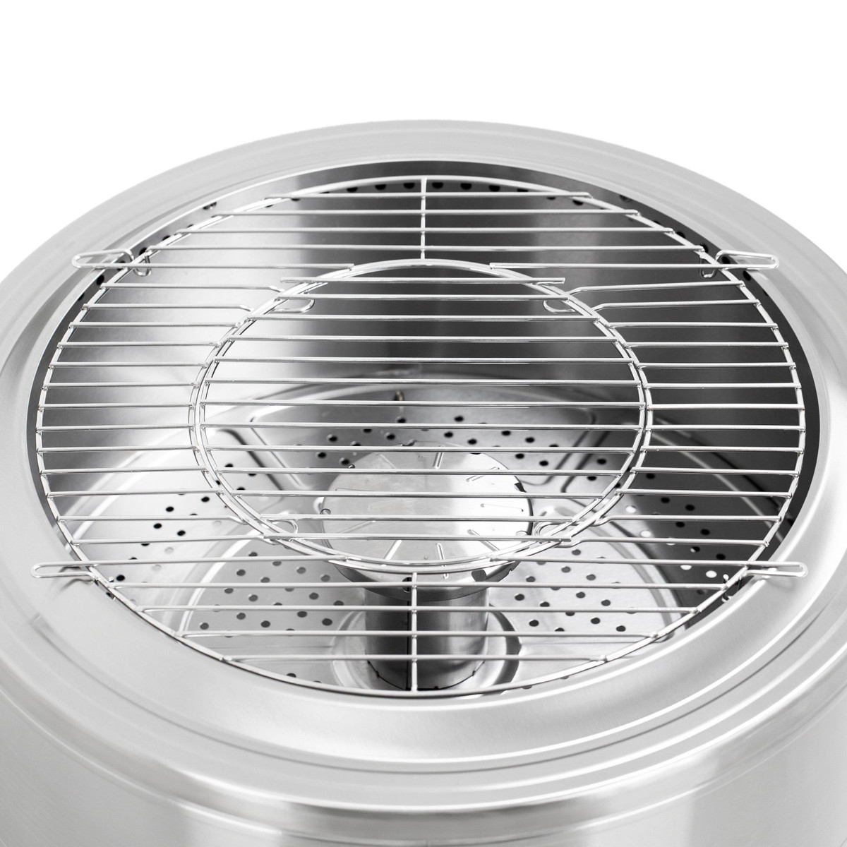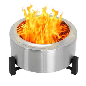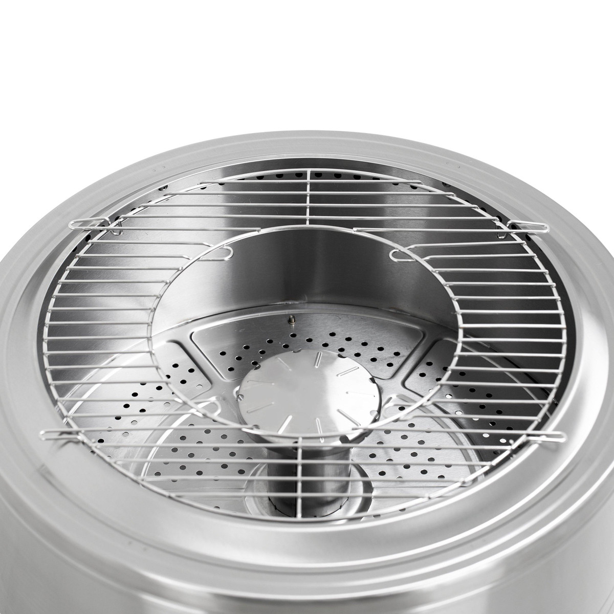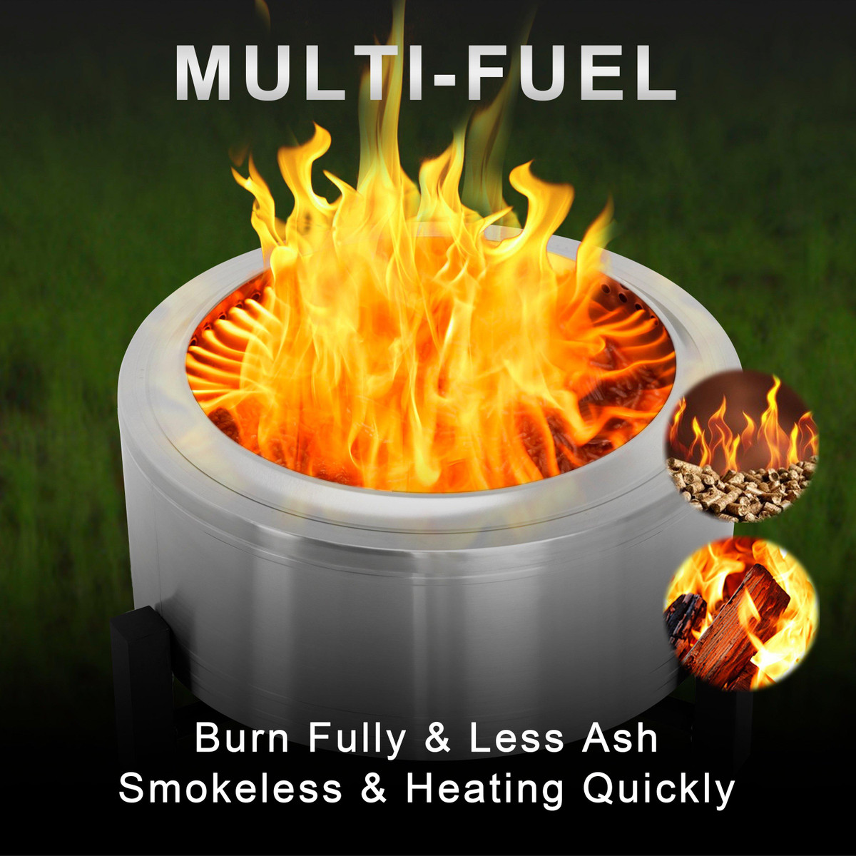 Enhance your outdoor experience with the Heat Maxx 27 in. Round Smokeless Fire. Crafted from stainless steel, it features a patent-pending Turbo technology combustion system for a superior fire with minimal smoke and ash. An air chimney inside the fire bowl creates a low bonfire effect. A double-walled design provides insulation, reducing external surface temperature for safety. Includes three steel legs for stability. Measures 29 in. diameter x 16 in. H.