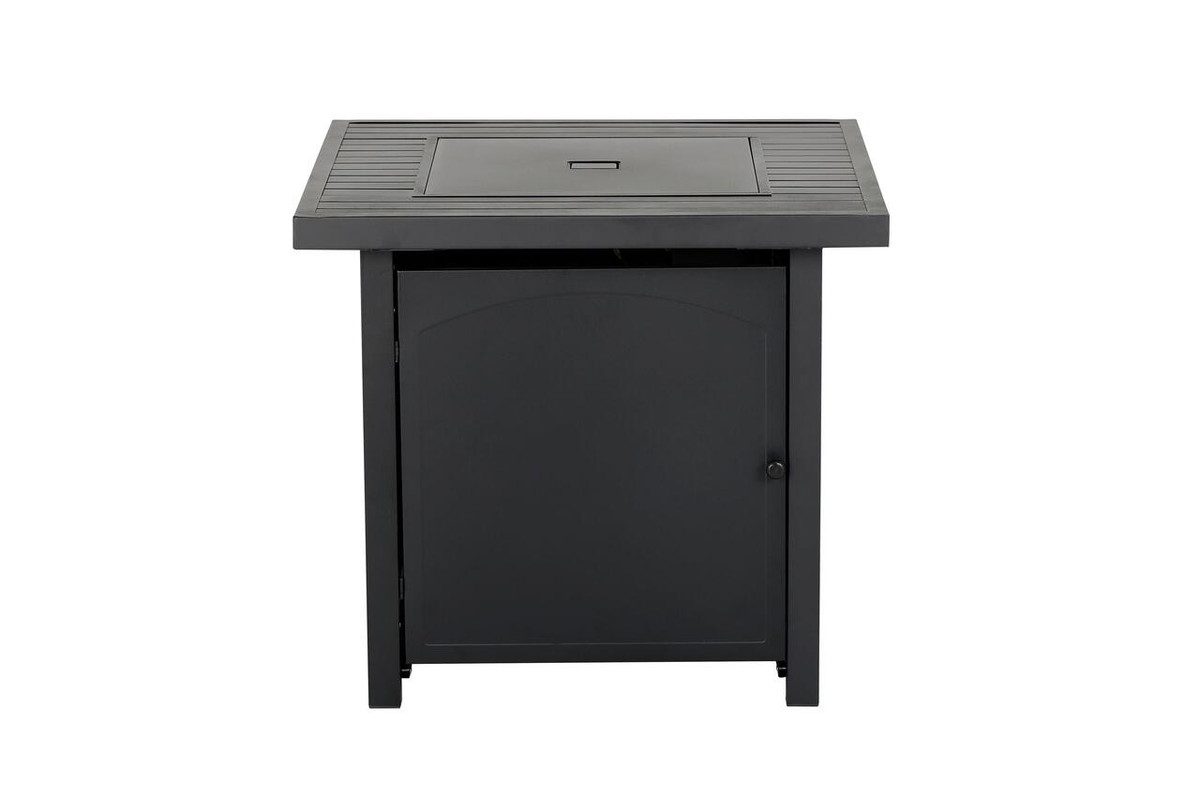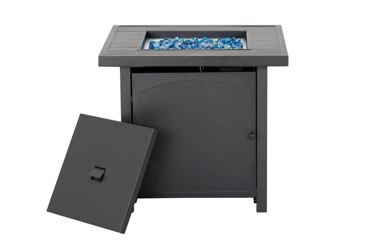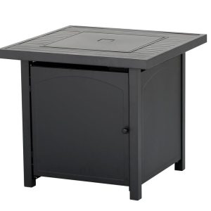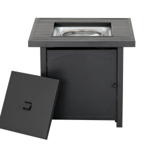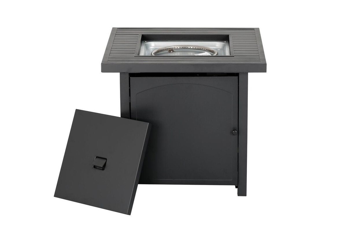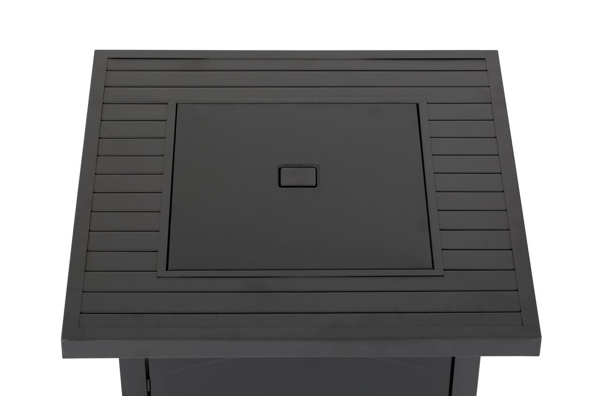 Enjoy warmth and style with the Heat Maxx 50000 BTU Compact 28 in. Square Propane Firepit. Small but powerful, it features a stylish slatted steel tabletop and durable, powder-coated steel walls that resist corrosion. With a push/turn piezo ignition, it’s easy to light and control. Designed for small spaces, it accommodates a 20 lb. propane tank (not included). Glass bezels add a touch of elegance, making it ideal for gatherings with family and friends. Measures 28 in. x 28 in. x 25.5 in. H.
