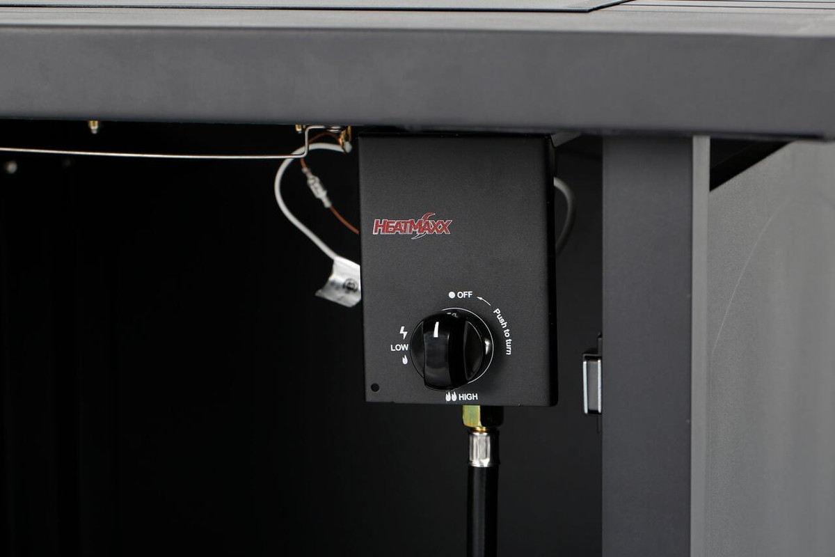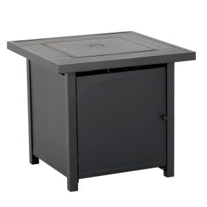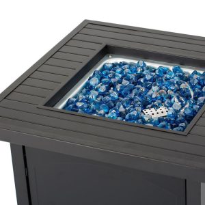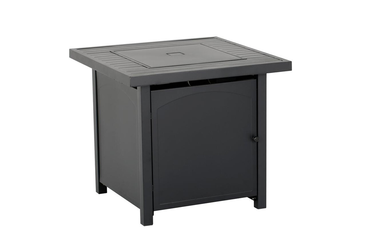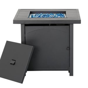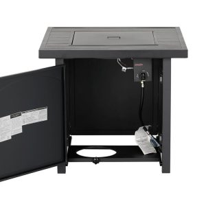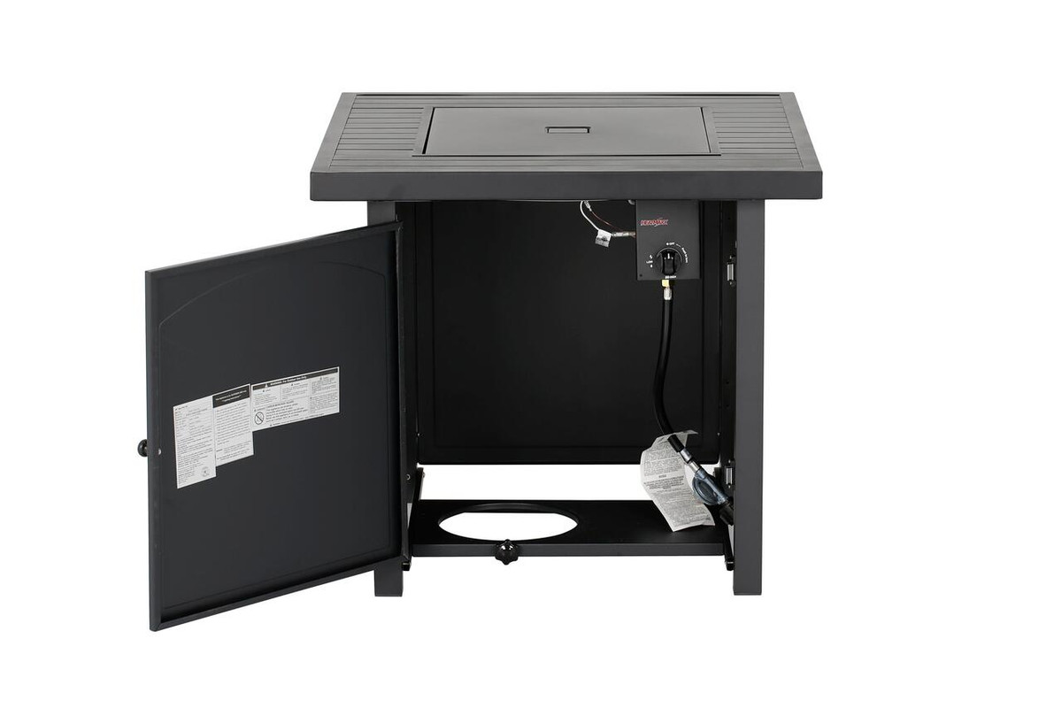 Enjoy warmth and style with the Heat Maxx 50000 BTU Compact 28 in. Square Propane Firepit. Small but powerful, it features a stylish slatted steel tabletop and durable, powder-coated steel walls that resist corrosion. With a push/turn piezo ignition, it’s easy to light and control. Designed for small spaces, it accommodates a 20 lb. propane tank (not included). Glass bezels add a touch of elegance, making it ideal for gatherings with family and friends. Measures 28 in. x 28 in. x 25.5 in. H.