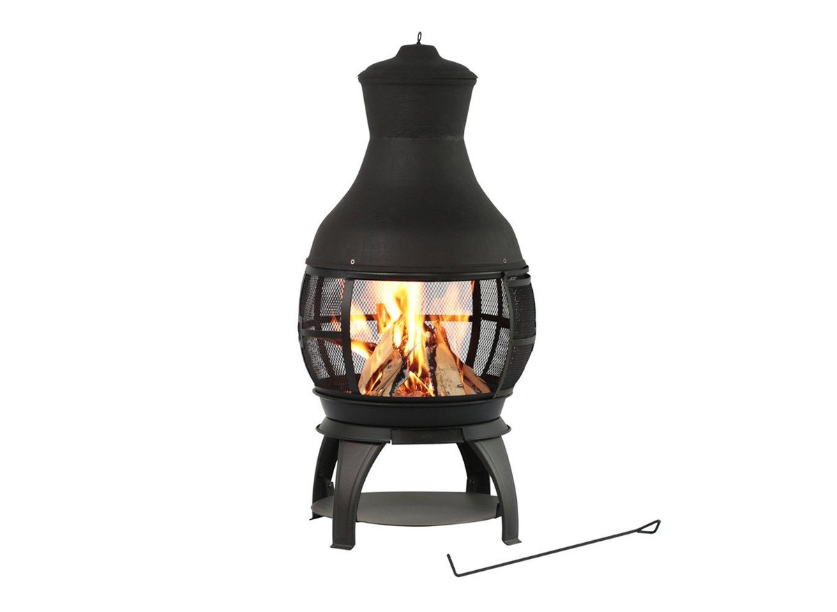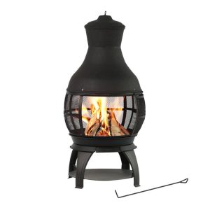 The Heat Maxx elegant classic 45 in. Cast Iron Wood Burning Chiminea boasts heavy-duty cast-iron construction in a timeless hourglass shape. Coated with high-temperature paint, it ensures durability and rust prevention. The built-in log storage beneath the fire bowl adds convenience, while the removable ash catcher makes cleanup a breeze. Easy to assemble with minimal tools, it accommodates both firewood and artificial logs. A metal fire poker is included. Measures 22 in. diameter x 45 in. H.