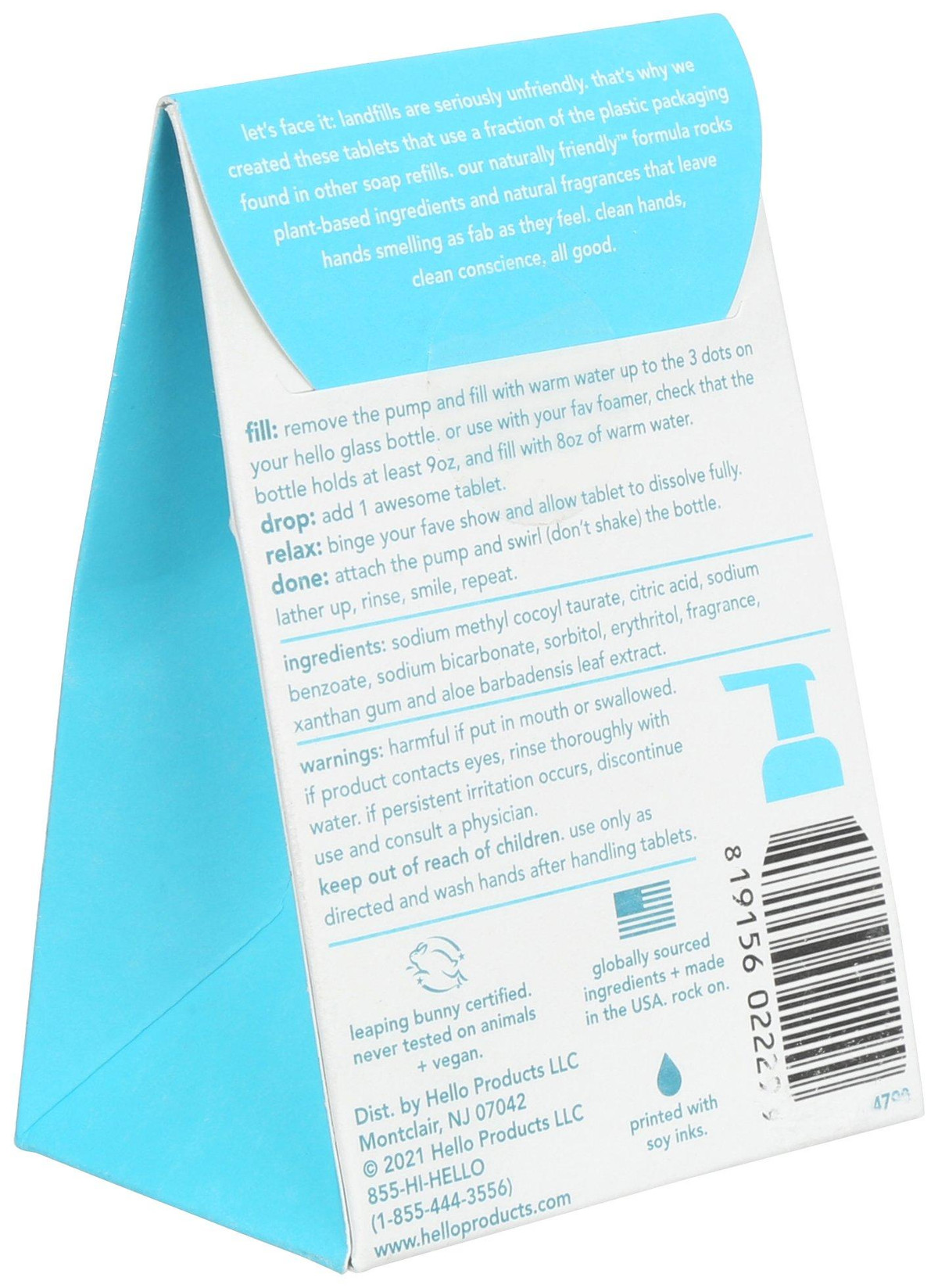 Hello’s foaming hand wash tablets are friendly to the environment and your hands. Using a water free refill tablet, instead of bulky soap refills, reduces your carbon footprint. And that’s not all, Hello thoughtfully crafted our tablet with natural fragrances and moisturizing ingredients, for a super-amaze skin feel.