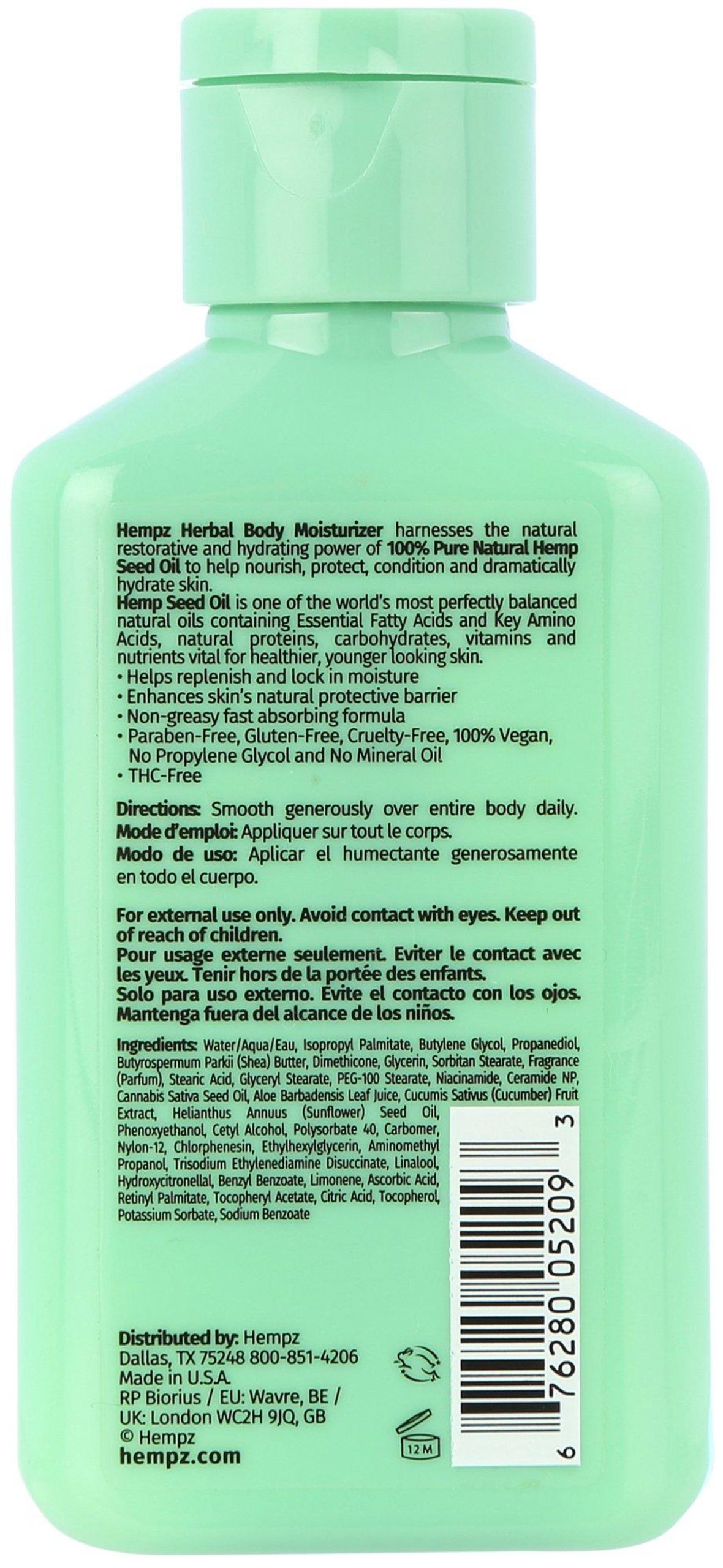 This Body Moisturizer contains 100% pure hemp seed oil to help replenish and lock in moisture, and enhance skin’s natural protective barrier. Non-greasy fast-absorbing formula. Nourishes, protects, conditions, and dramatically hydrates skin. Cucumber & Aloe scent. Travel size contains 2.25 fl. oz.
